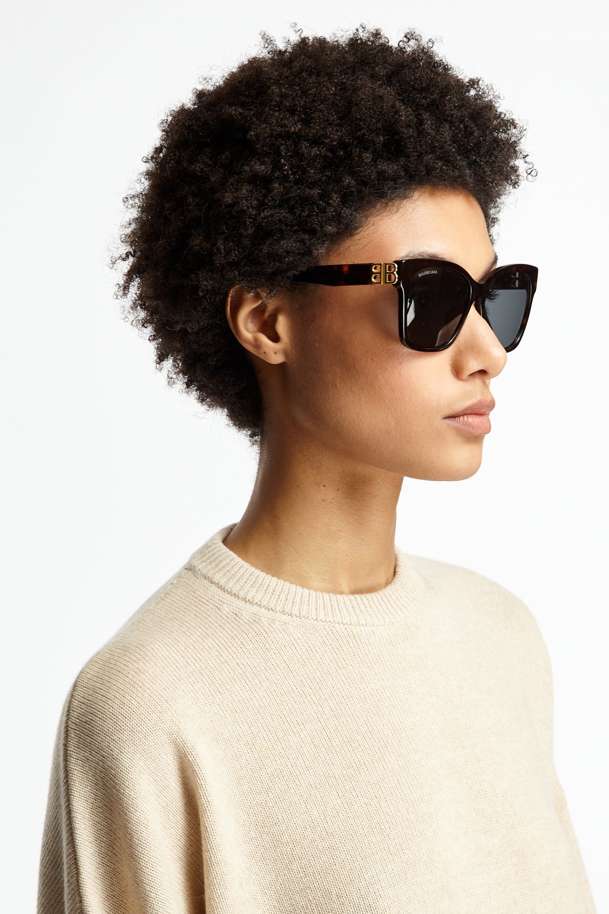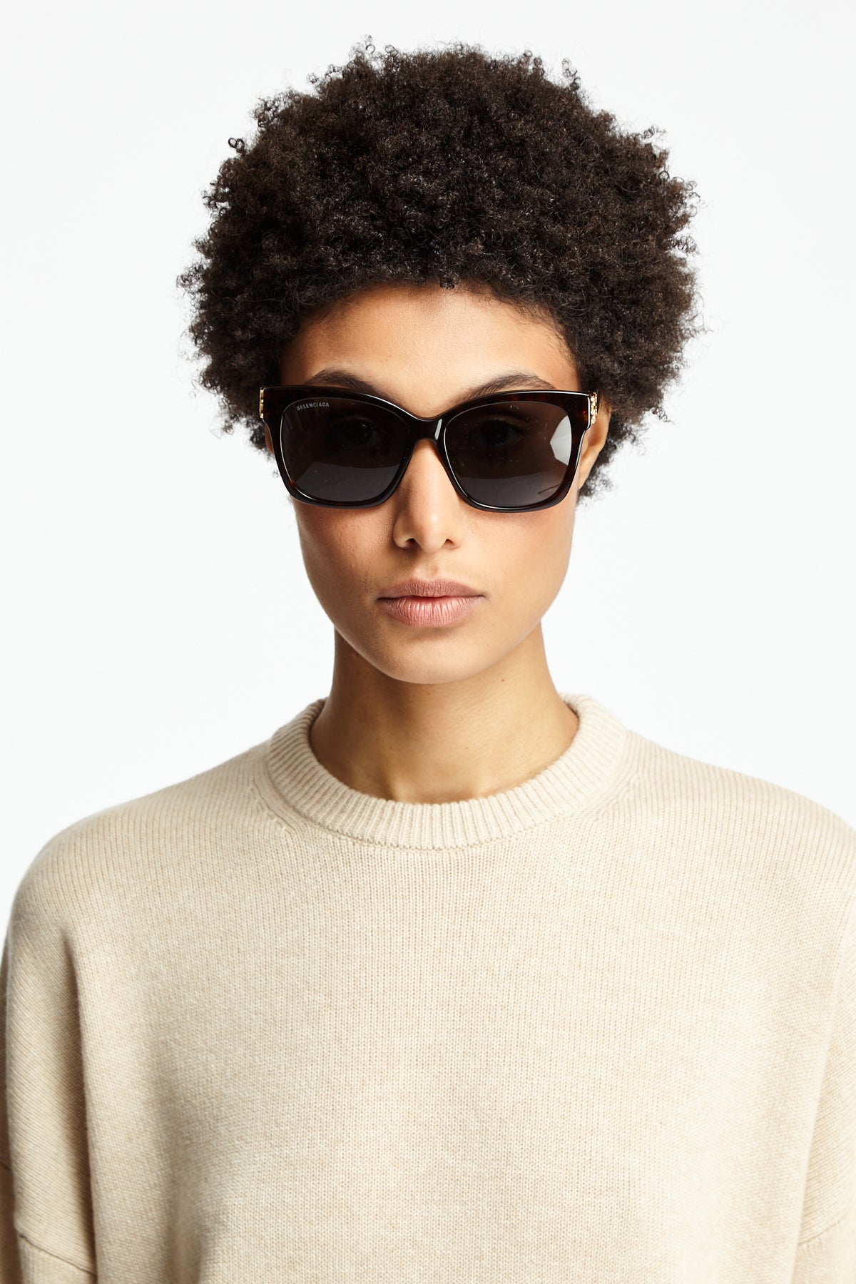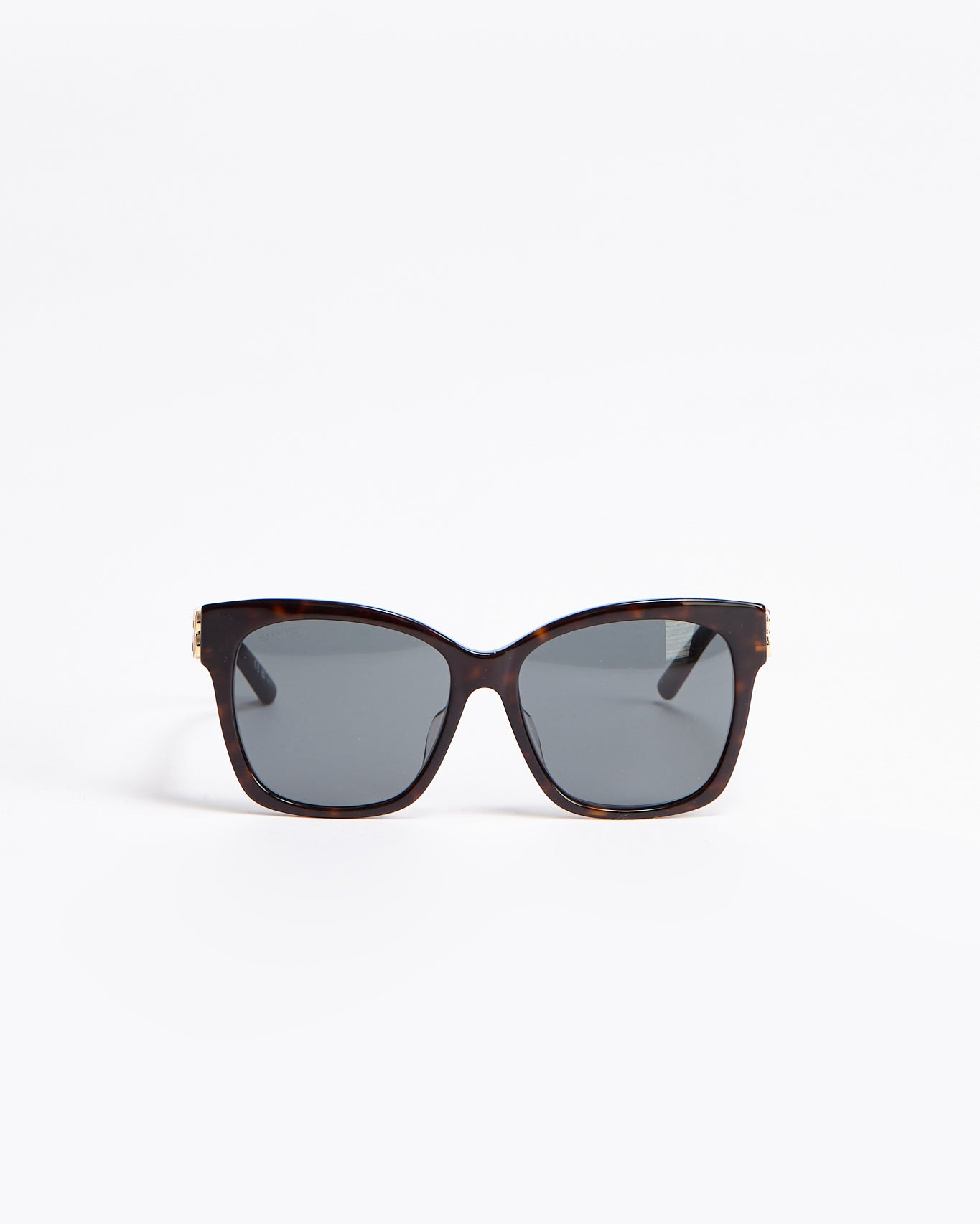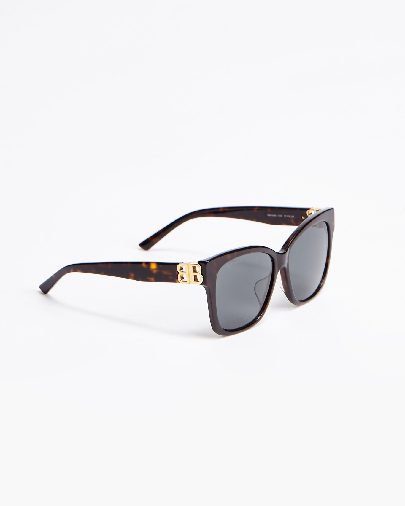 Balenciaga Dynasty Square in dark havana features full acetate frame, hidden hinges within the BB logo, lasered logo on the right lens, 100% UVA/UVB protection.