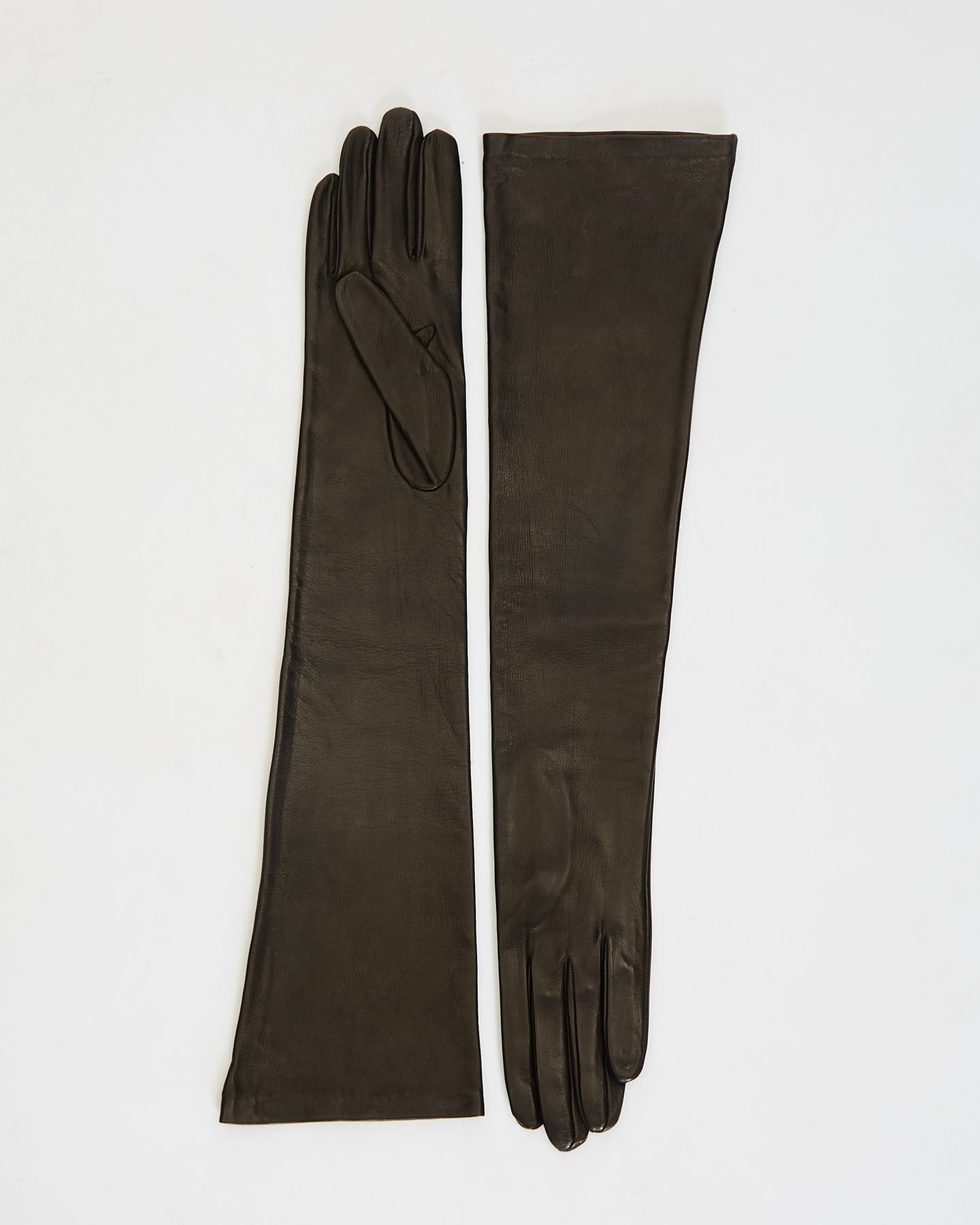 Dries Van Noten Long Leather Gloves in black features handcrafted elbow length gloves in soft lambskin leather.