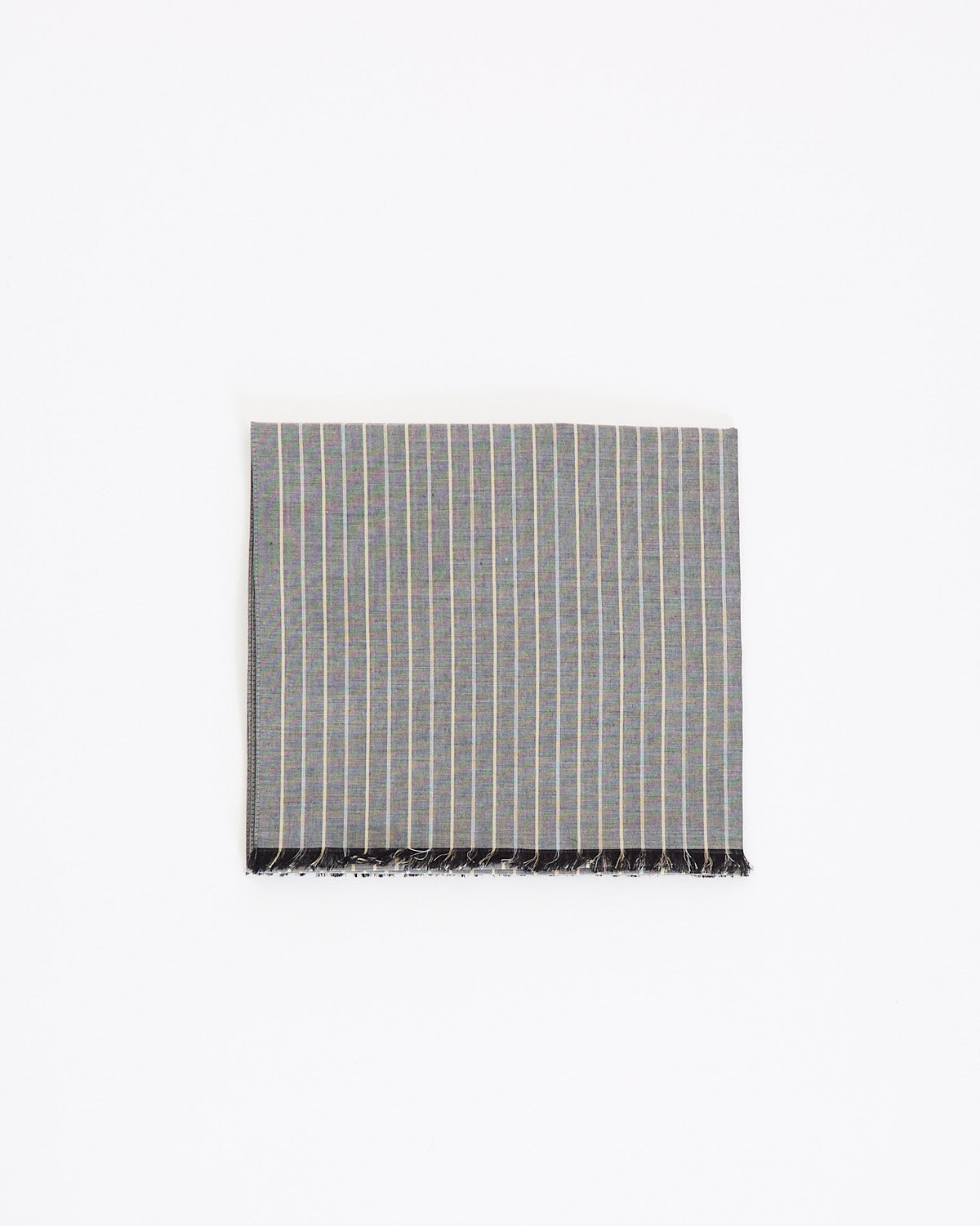 The Row Guel Scarf in midnight features a classic woven design in a striped cotton fabrication with raw edge finishing.
