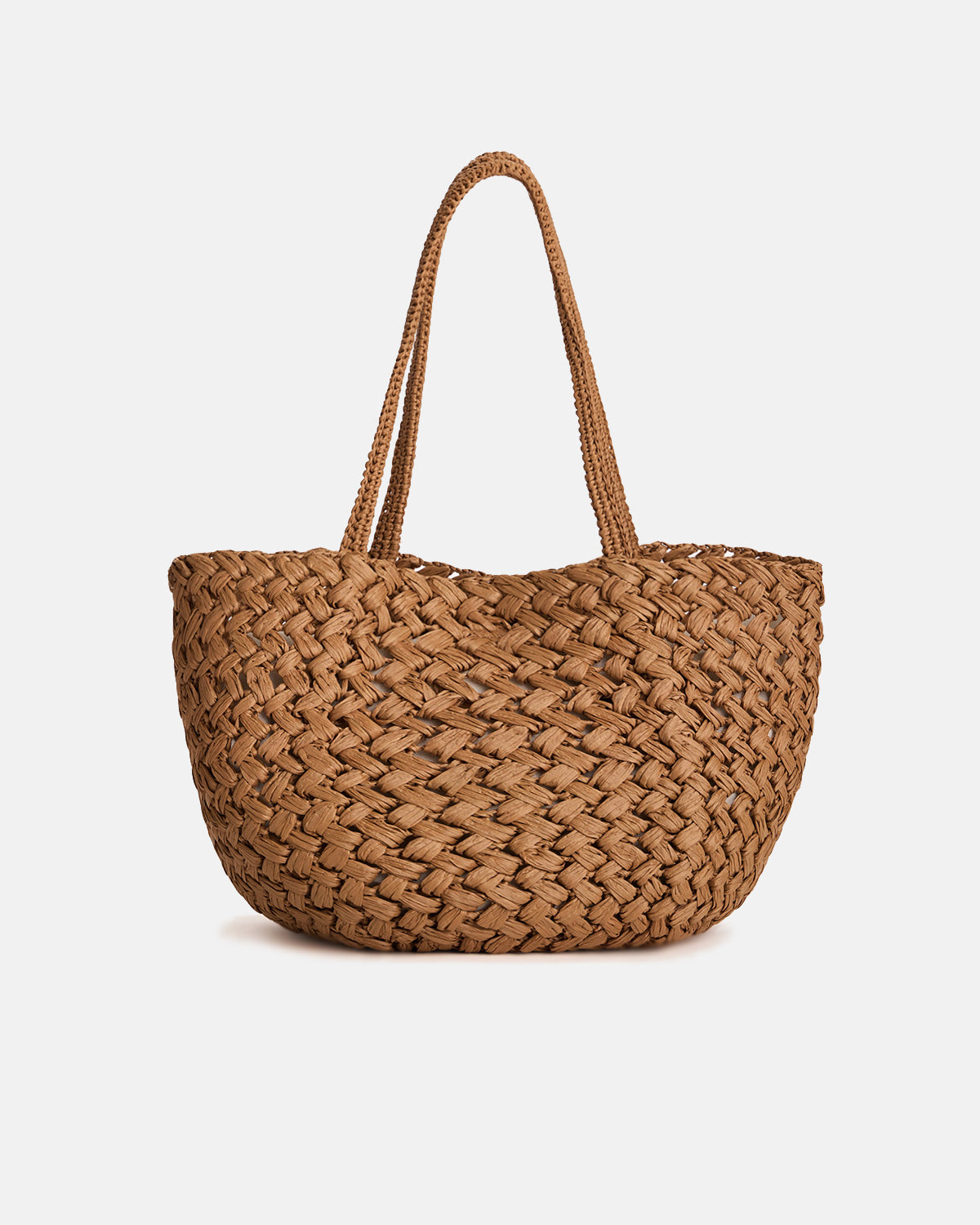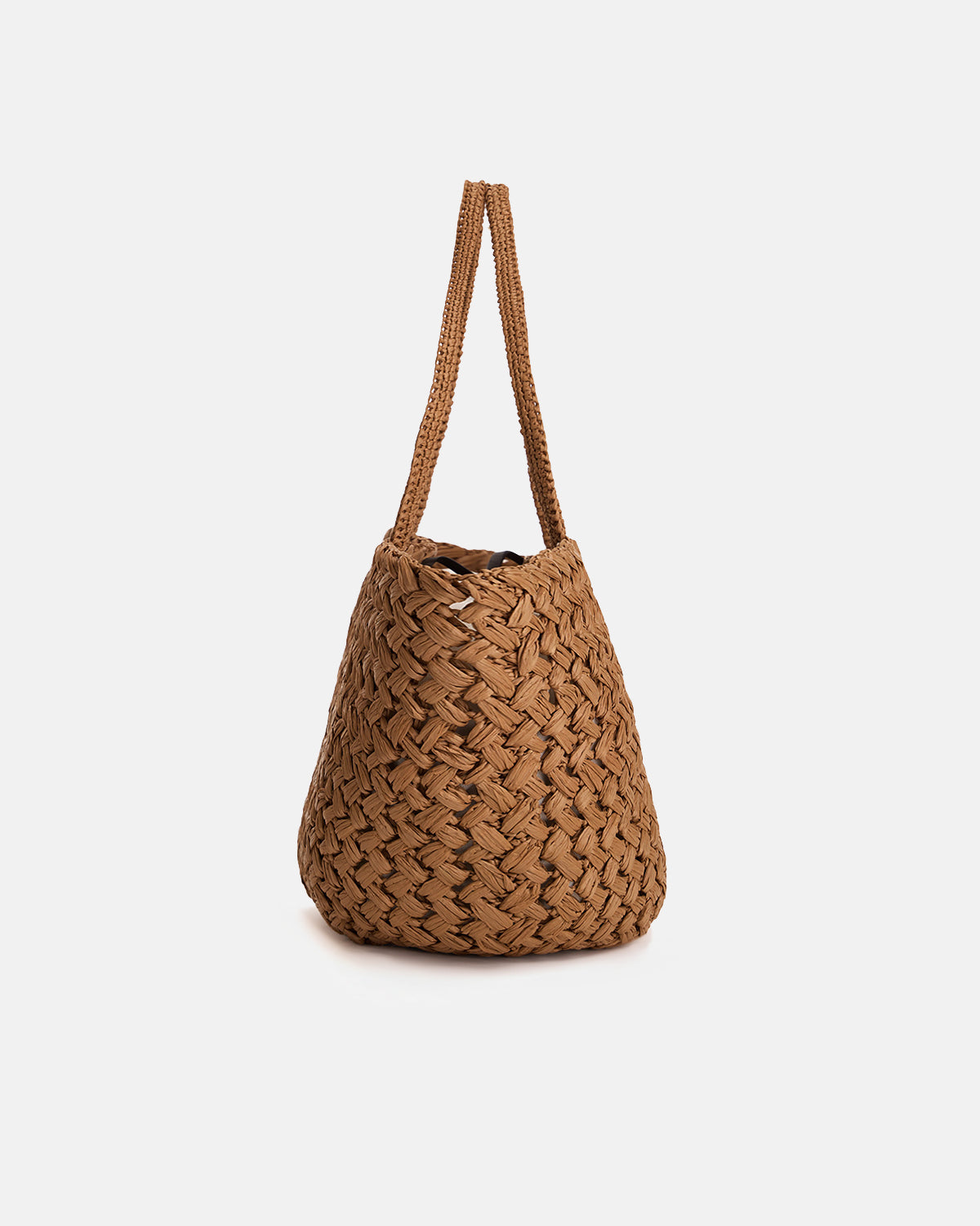 The Row Large Estelle Two in the features a classic tote silhouette in a handwoven fabrication. Details include shoulder strap, interior tie closure, interior pouch and rounded base.