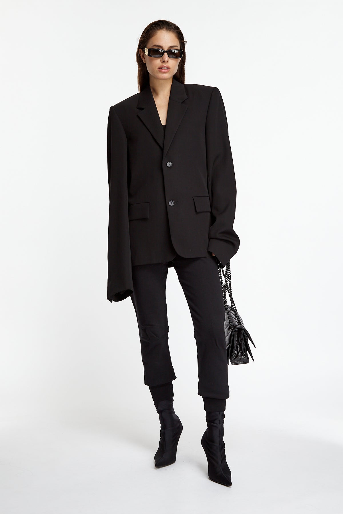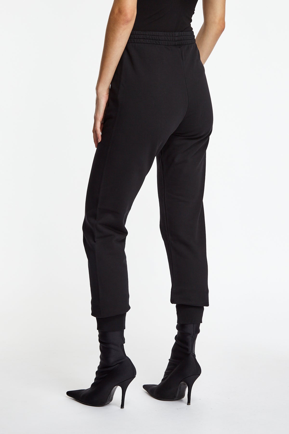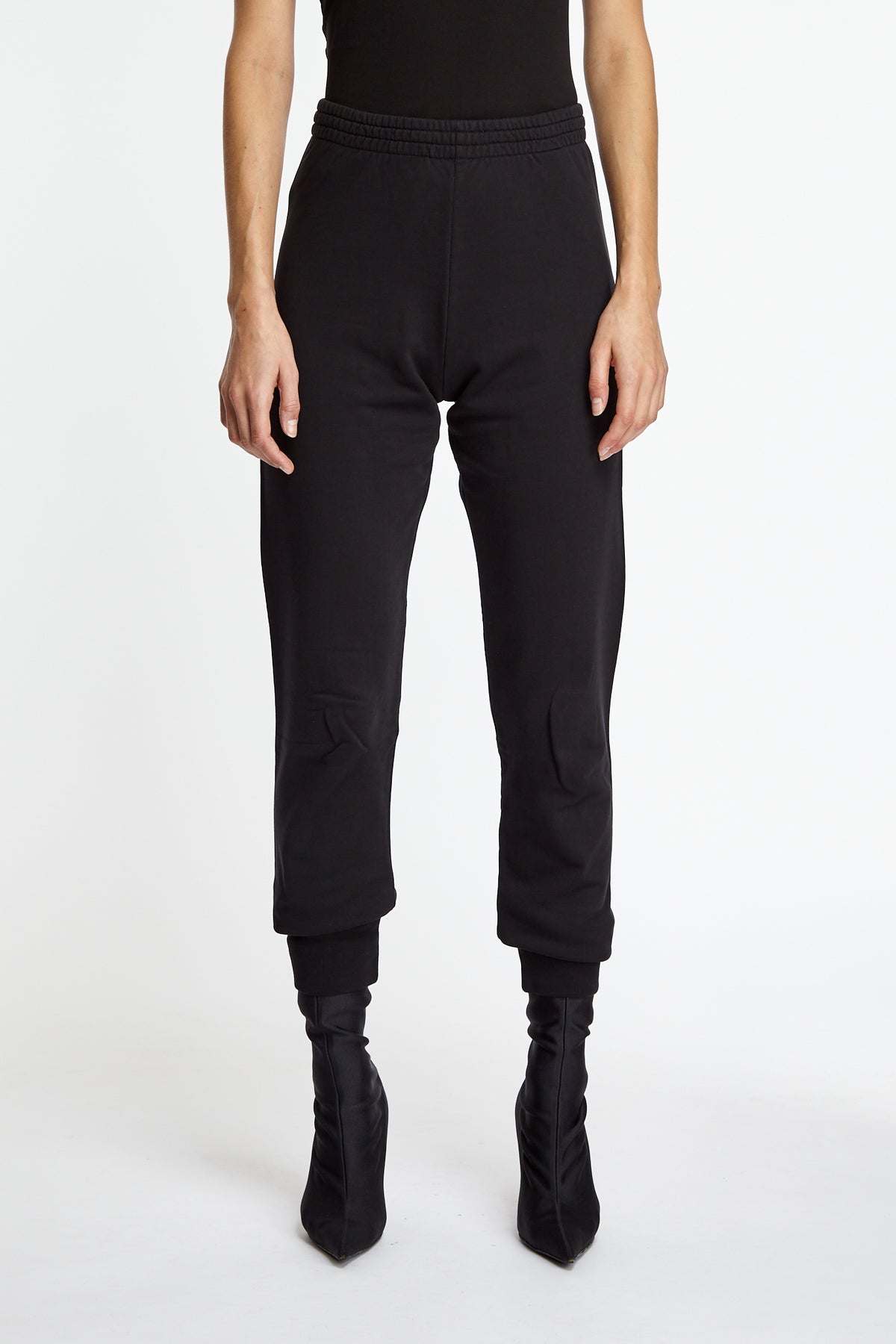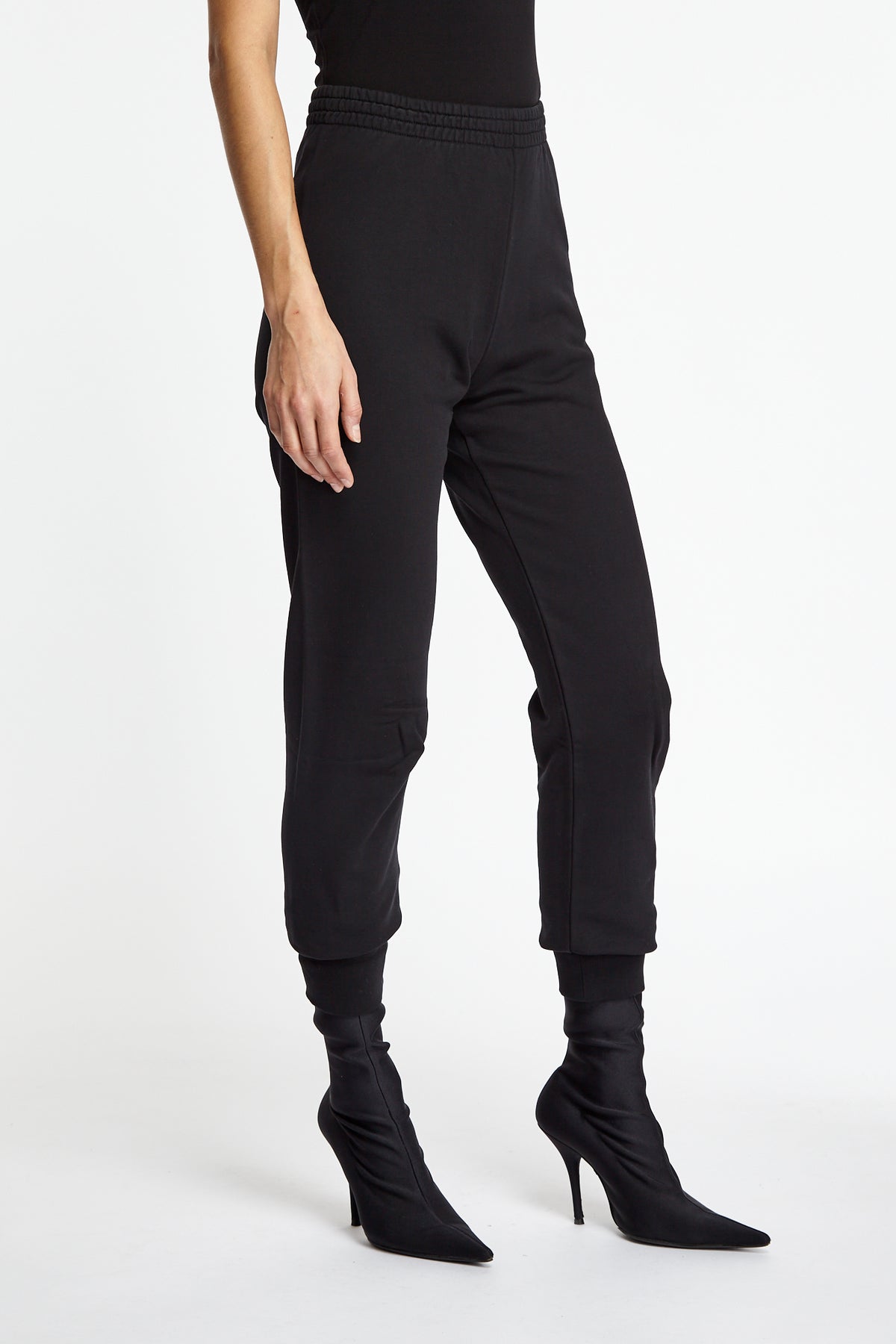 Balenciaga Loose Legging in black features a slim silhouette. Details include drawstring waist, tapering through the leg and ribbed cuffs.