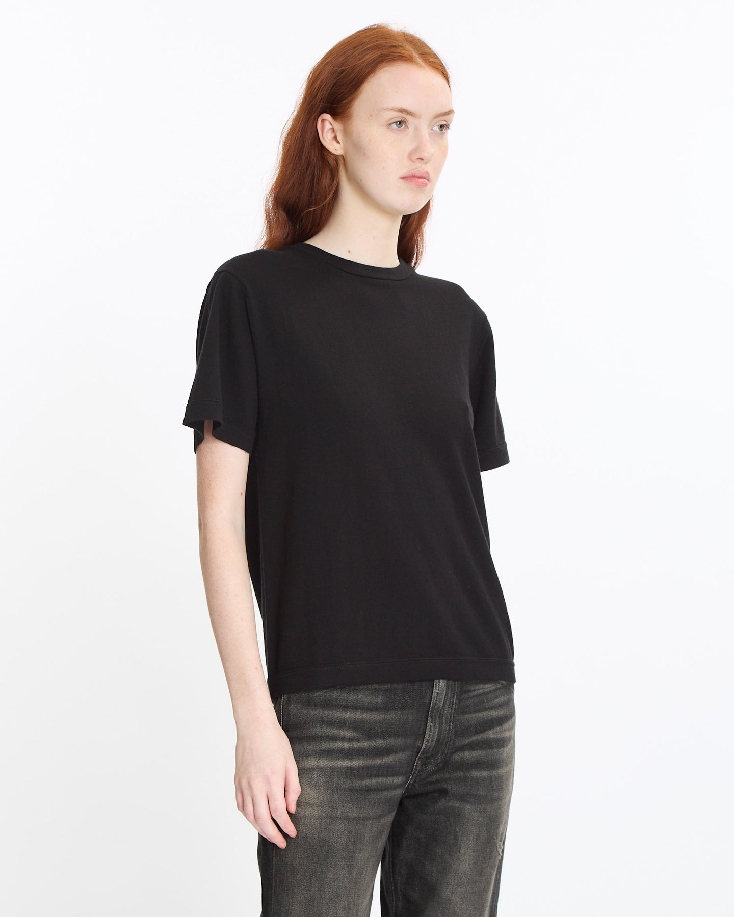 Extreme Cashmere N°268 Cuba T-Shirt in raven features a boxy fit. Details include classic crewneck line, crisp light weight cotton-cashmere blend, and short sleeves.