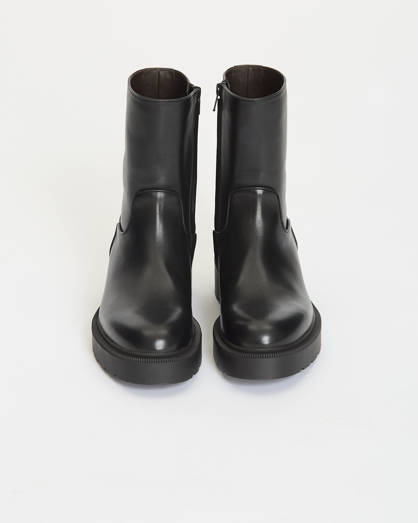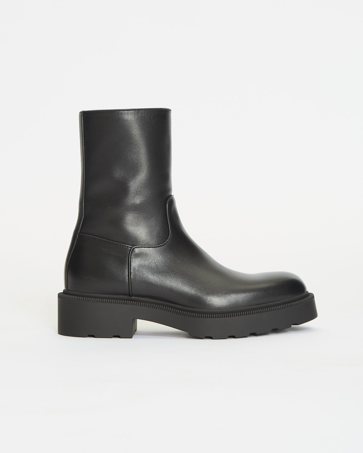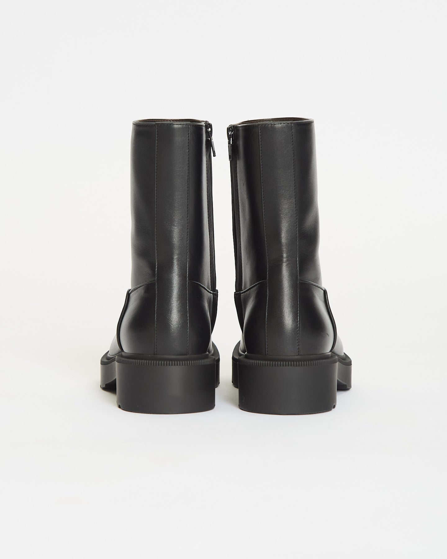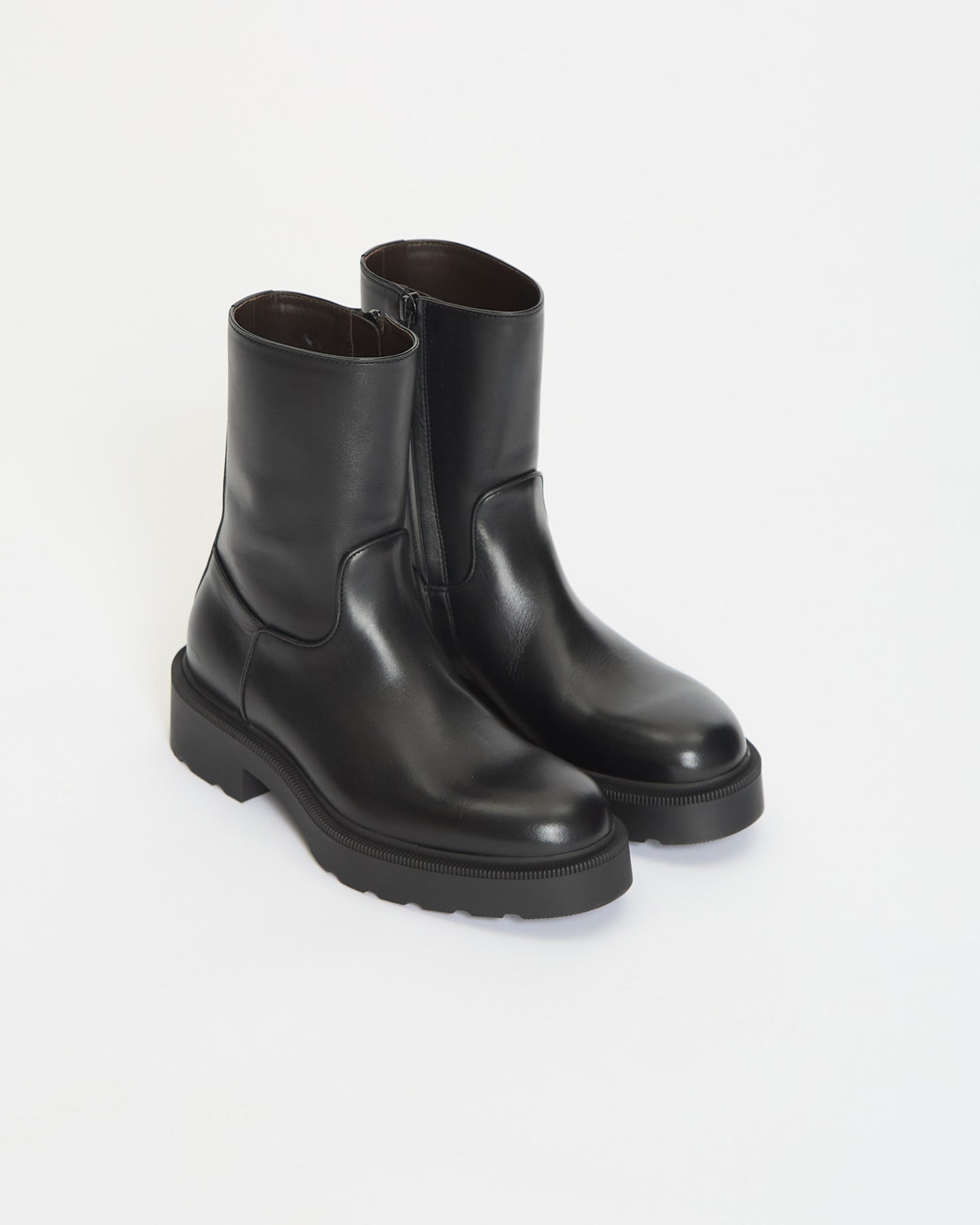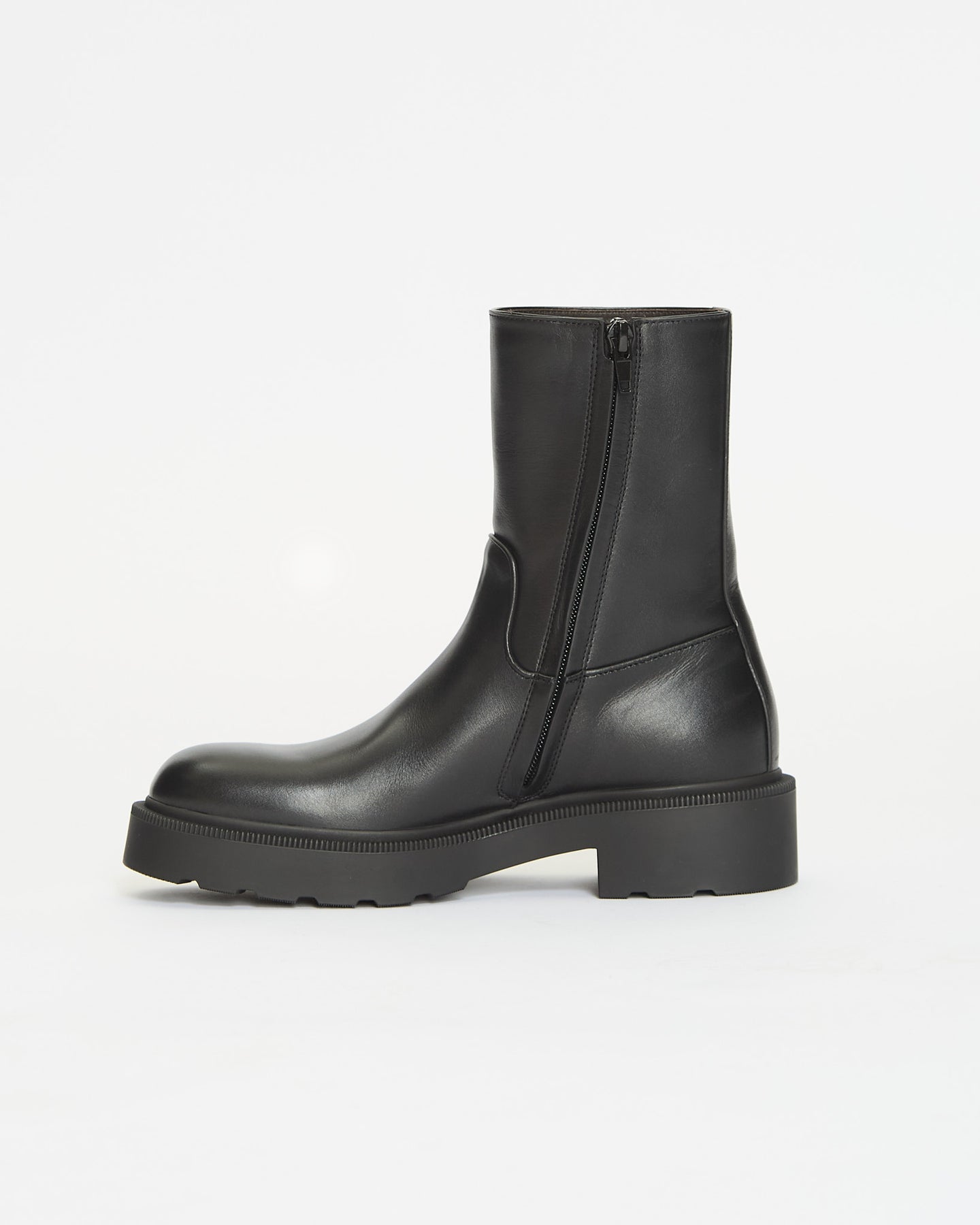 The Row Nobilis TR Boot in black features a ankle height boot in silky polished calfskin leather with round toe, thick heeled sole and interior zipper closure.