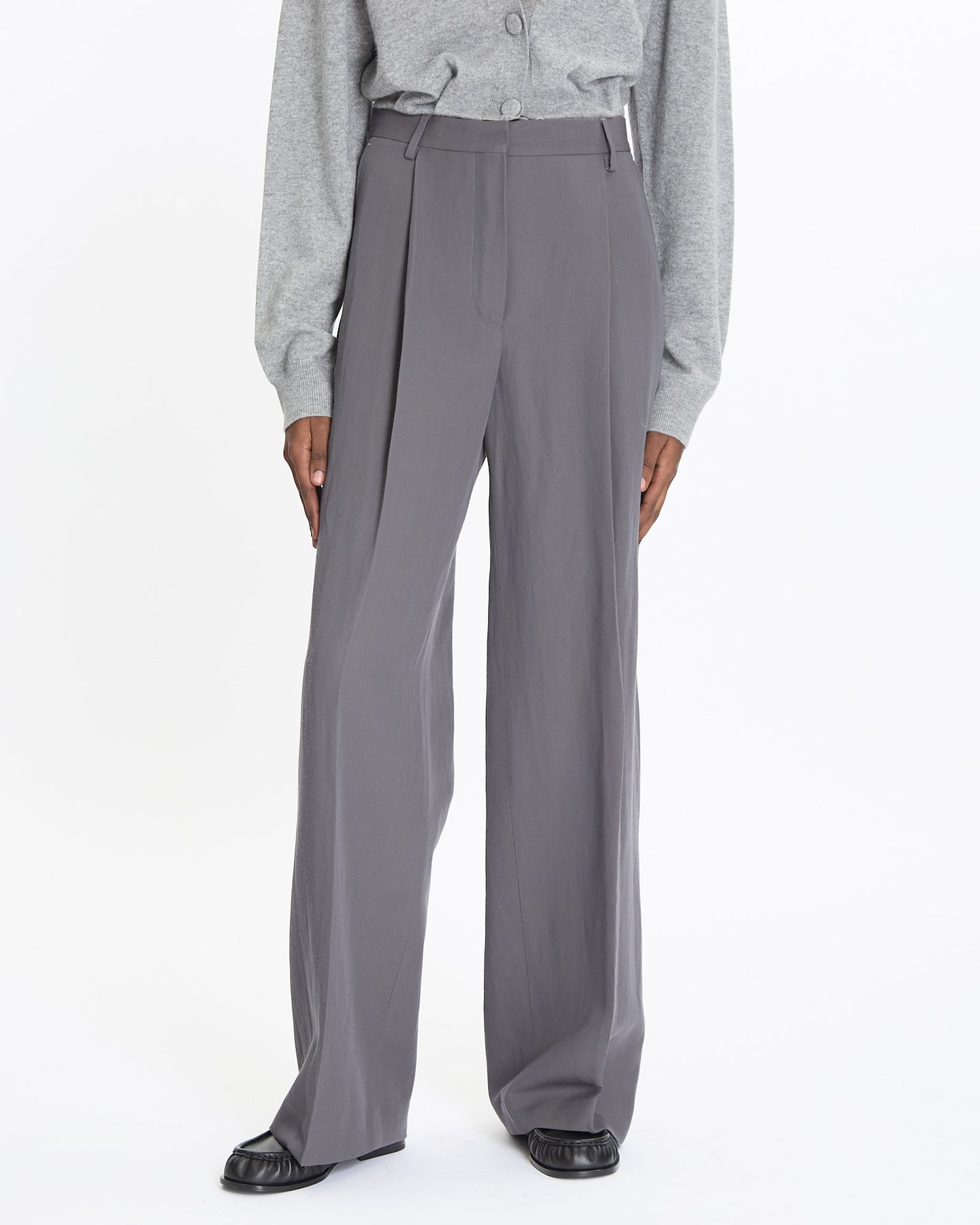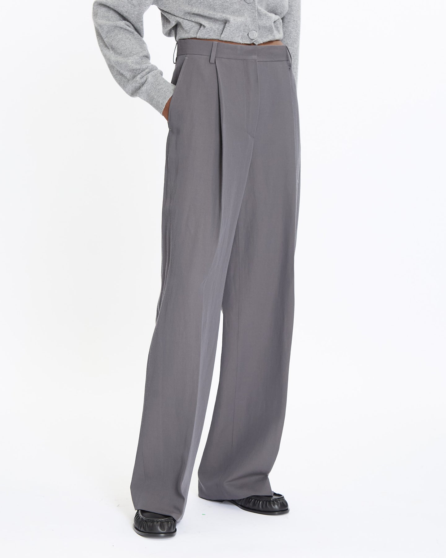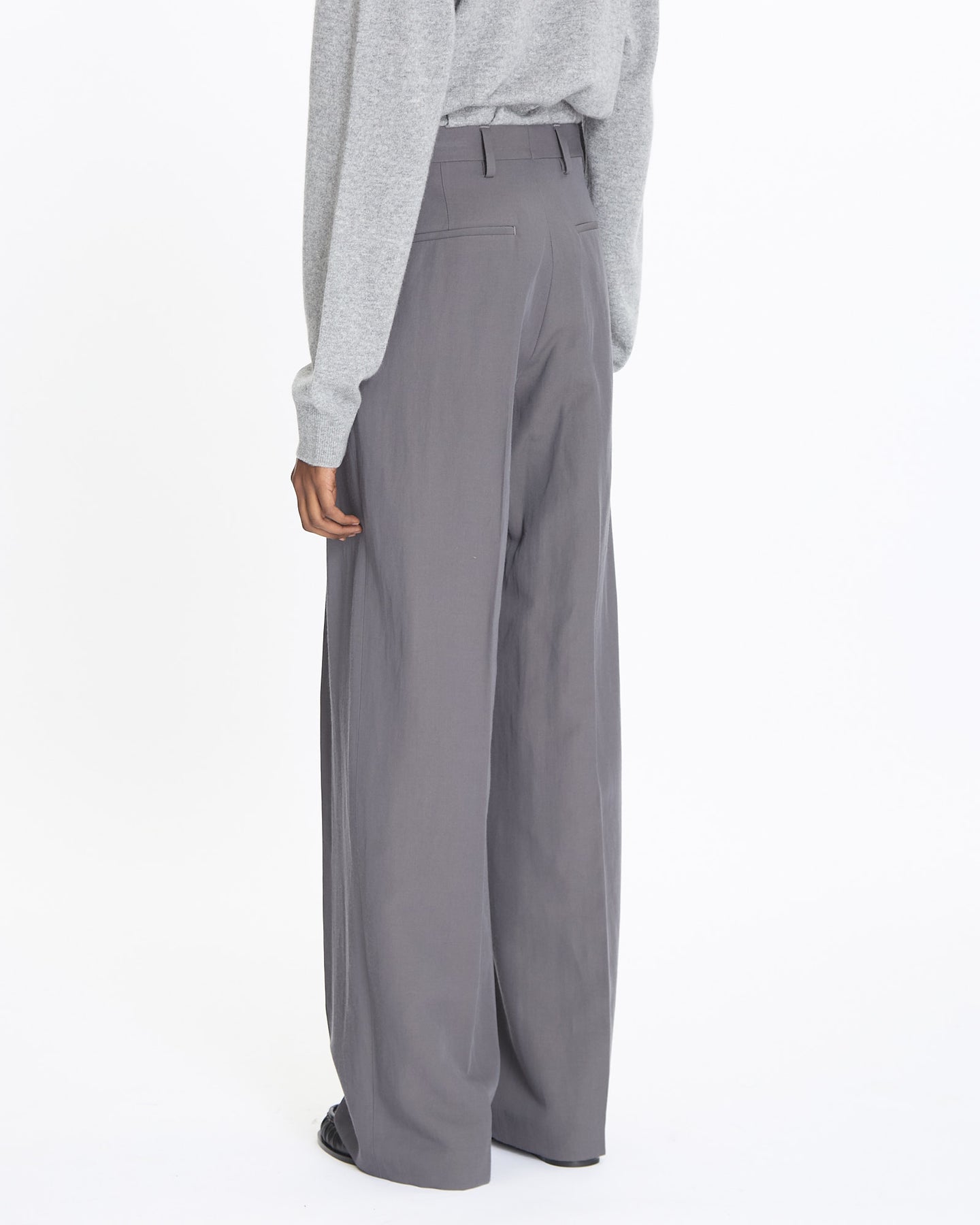 Dries Van Noten Porter Pants in taupe features a classic fit. Details include flat front pleats, zip fly, straight fit from hips and side pockets.