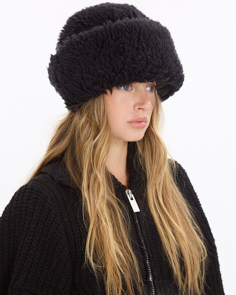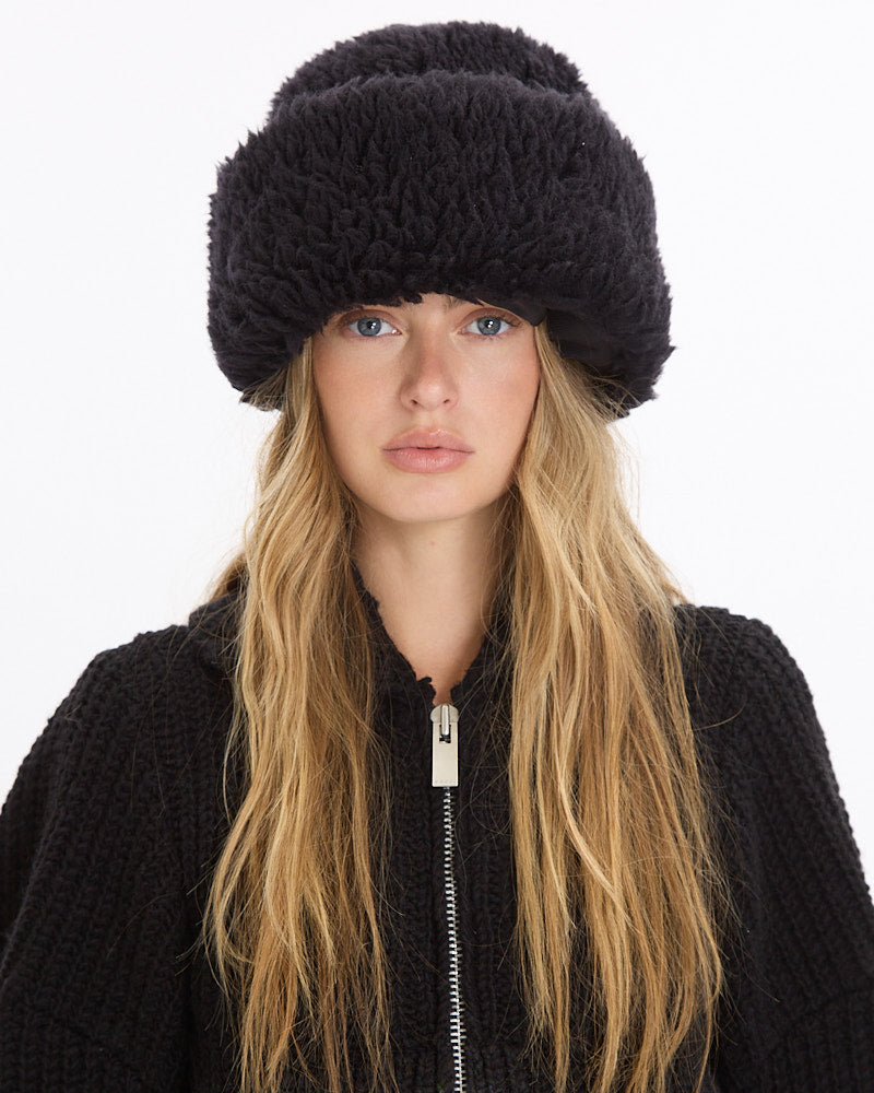 Sacai’s puffy beanie brings sculptural ease to cold-weather essentials—crafted in plush wool that pairs warmth with a tactile edge, it delivers texture, comfort, and a refined modern statement.