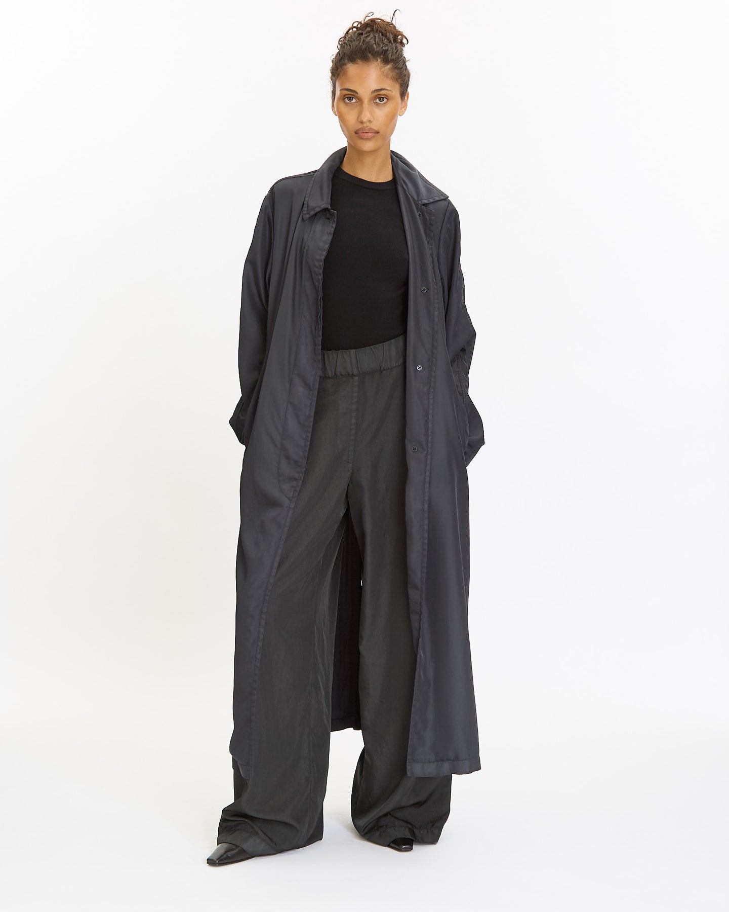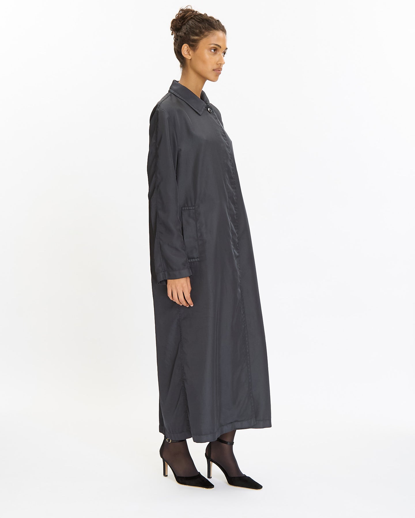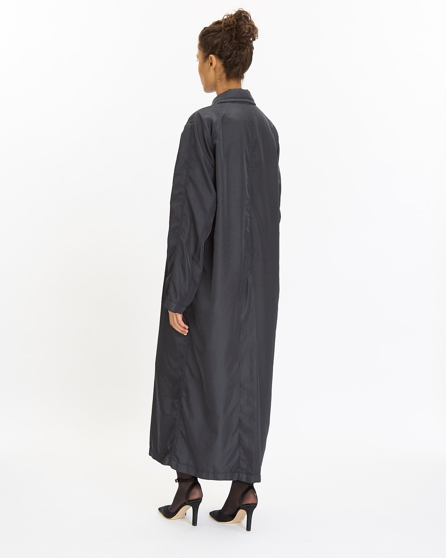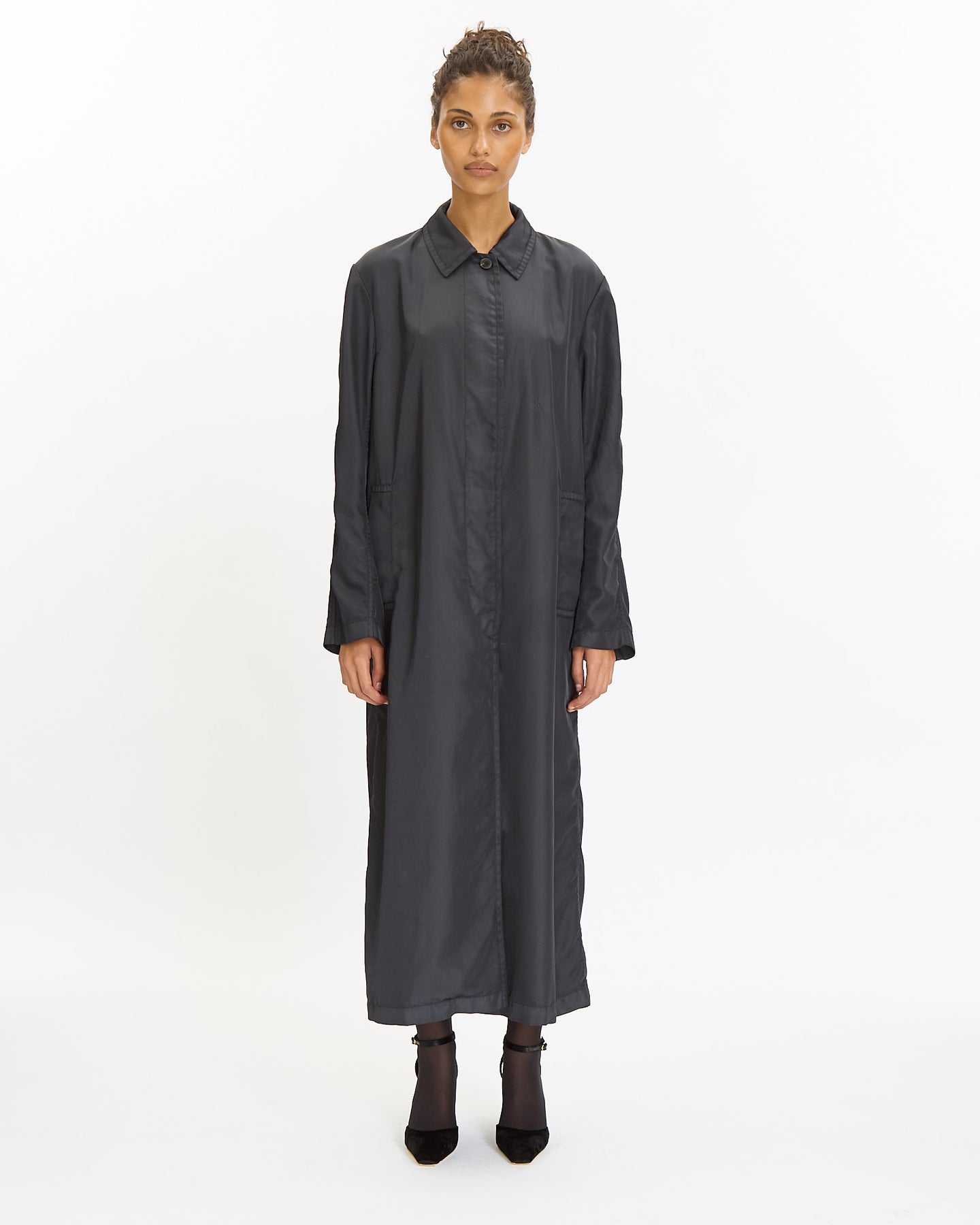 Dries Van Noten Raltonas Coat in dark green features a tailored fit in a sateen fabrication. Details include front button closure with concealed placket, front welt pockets and large back hem.