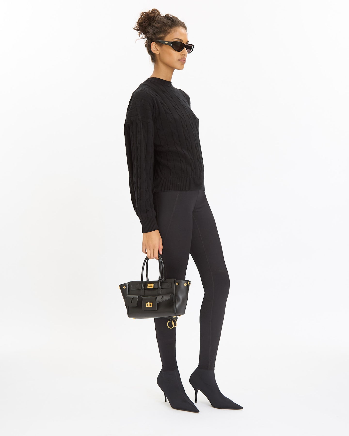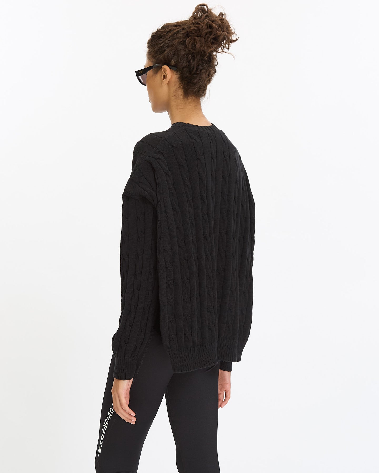 Balenciaga Semi Fitted Top in black features a slim front and large back in a knit fabrication. Details include inner lining for slim look and ribbed finishing at hem, cuffs and neckline.