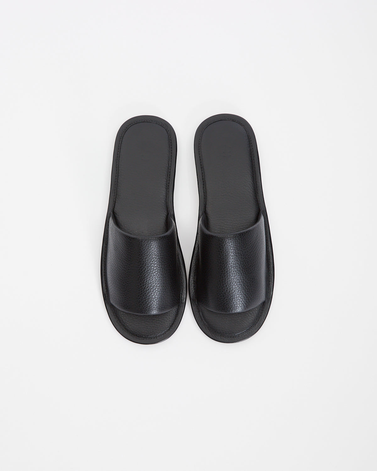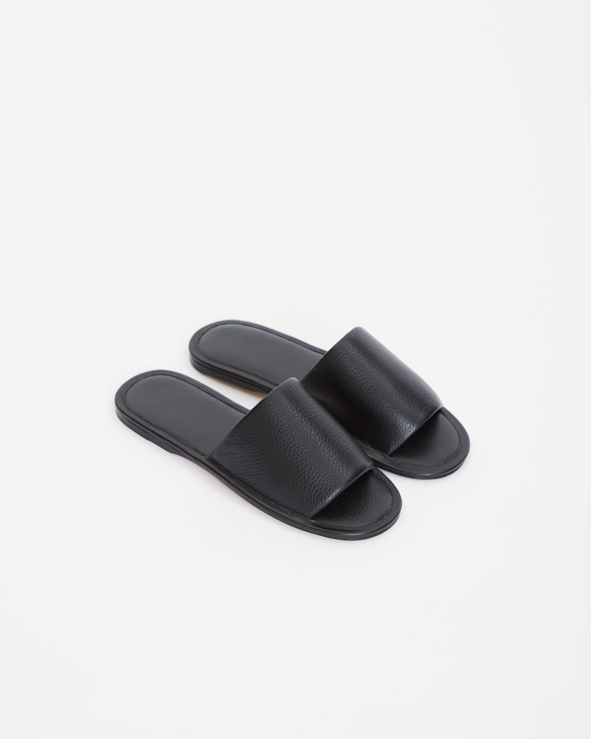 Lauren Manoogian Soft Slipper in black features a classic slip on design in a leather fabrication.