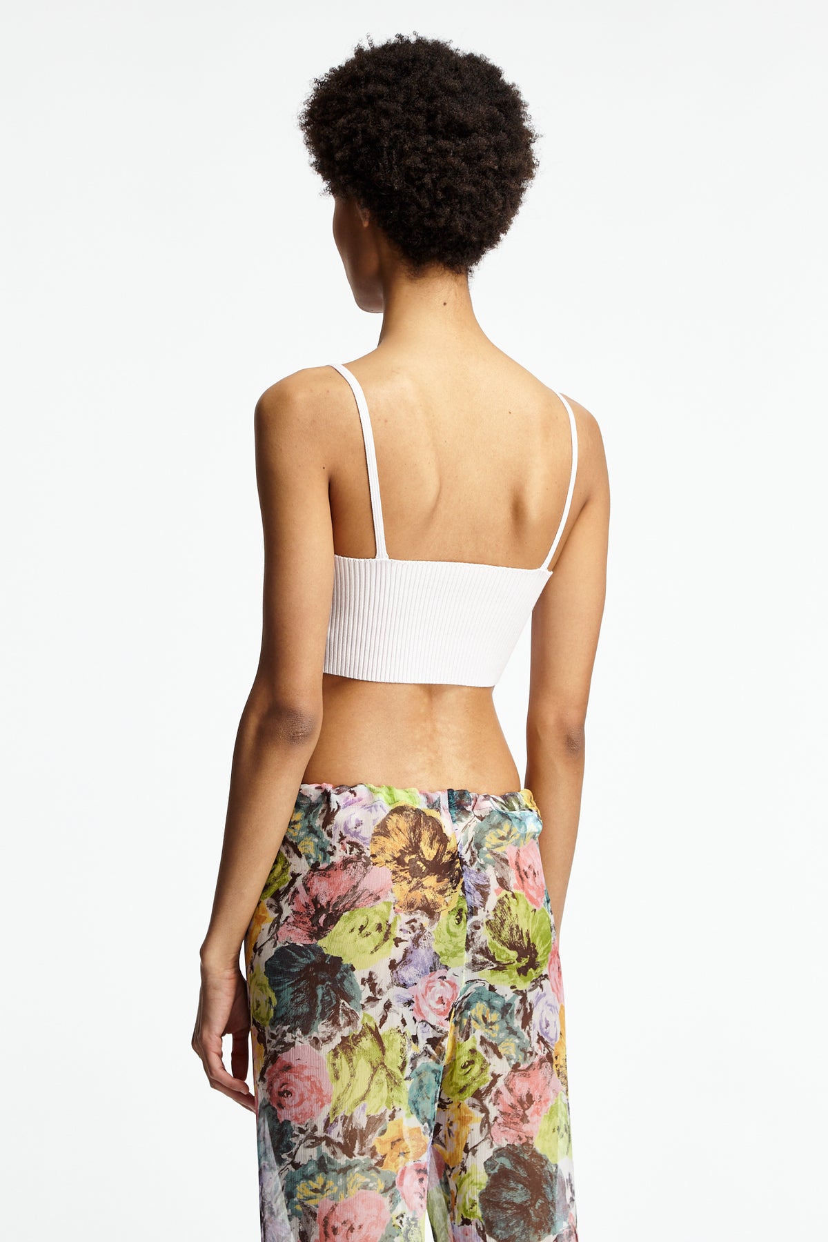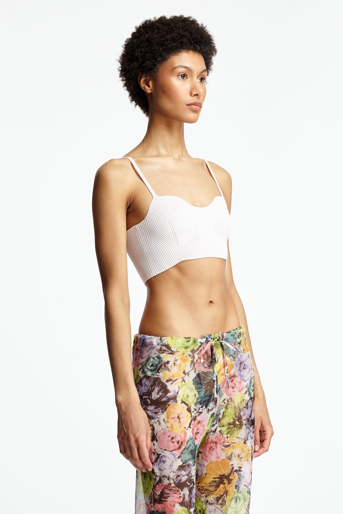 Dries Van Noten Tiffany Top in blush features a body con silhouette. Details include spaghetti straps, sweetheart neckline and rib knit fabrication.