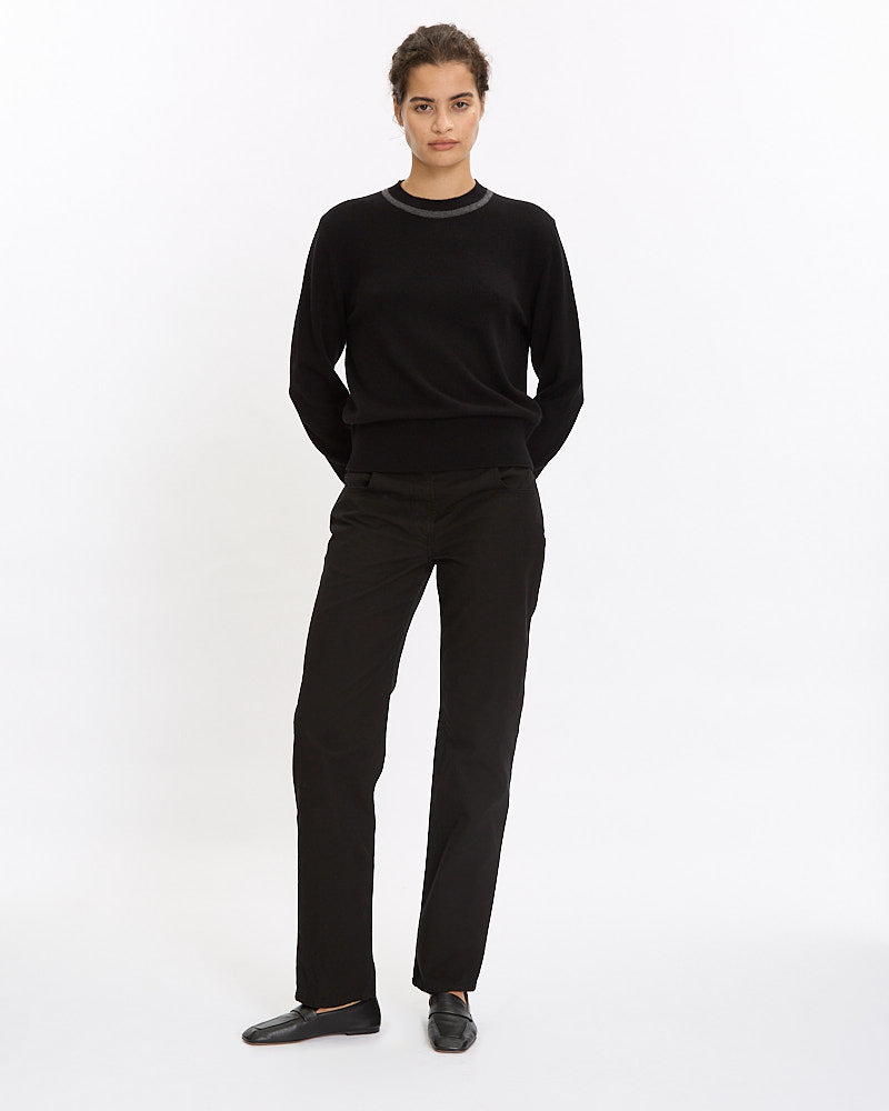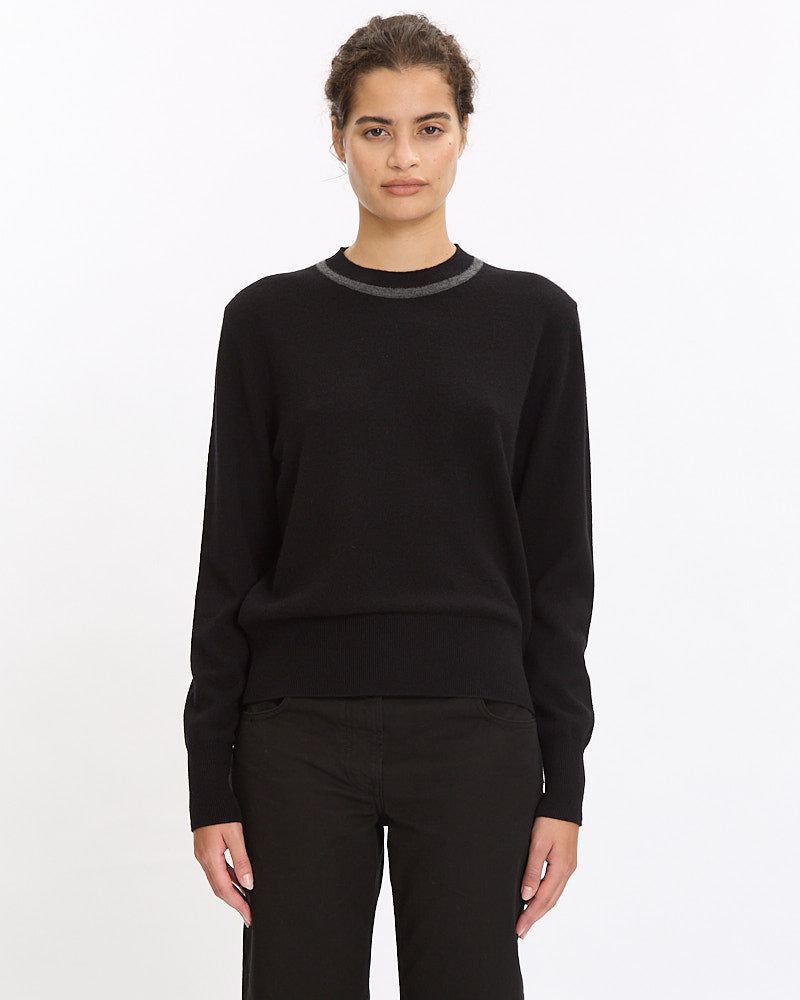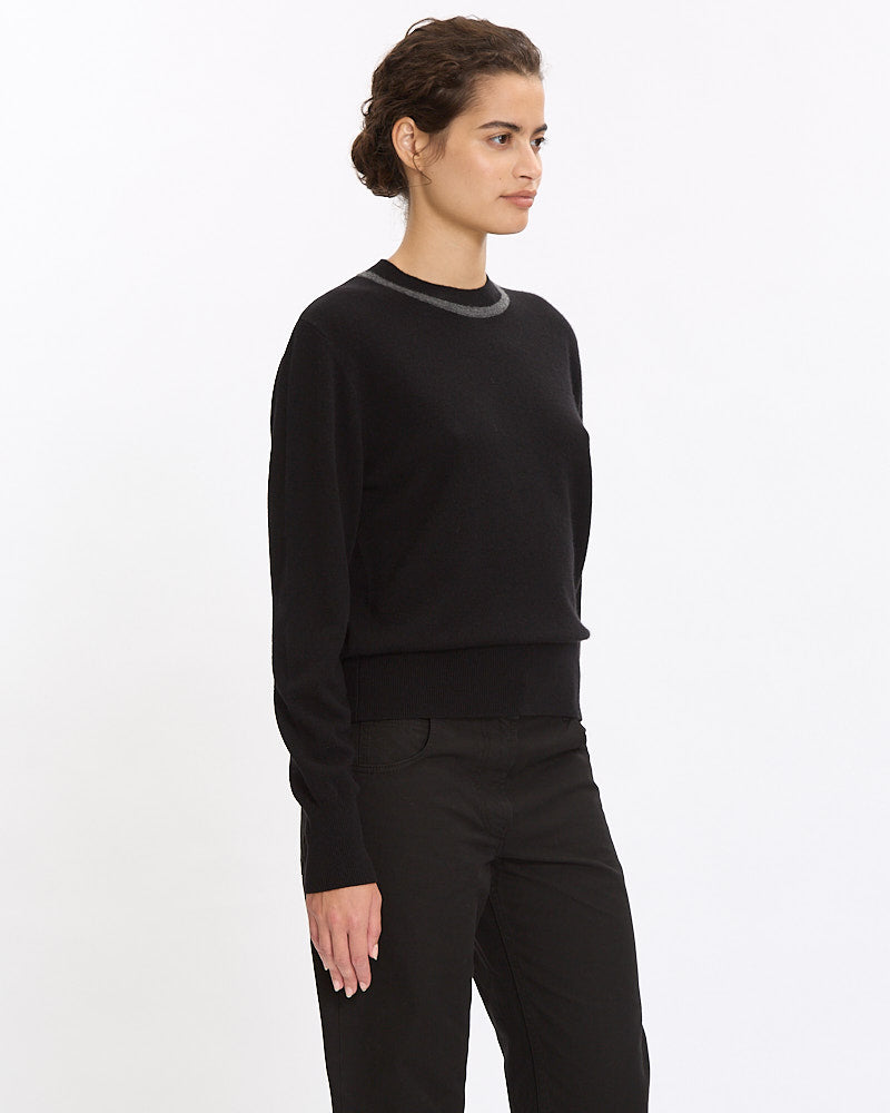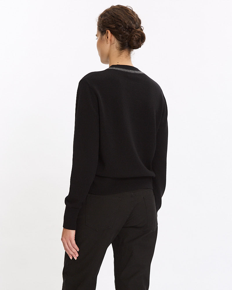 Dries Van Noten Tiko Sweater in black features a classic crewneck line and slim fit. Details include mock neckline with contrast stripe and ribbed finishing at neckline, hem and sleeve cuffs.