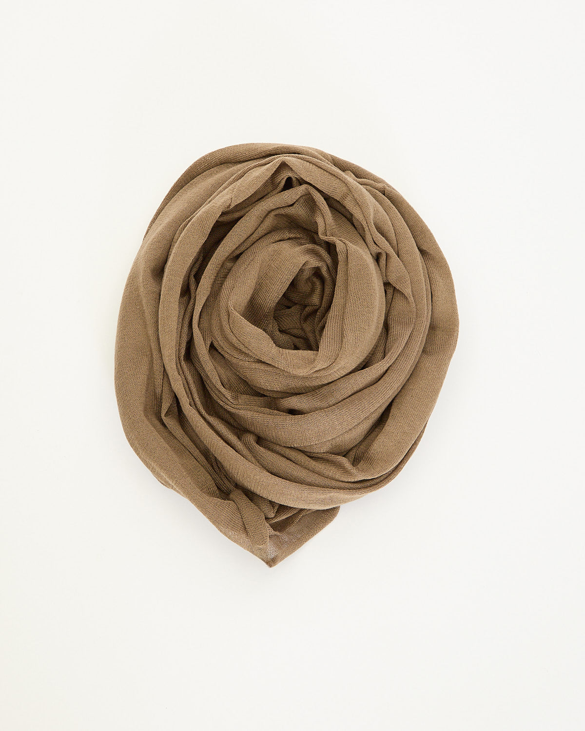 Lauren Manoogian Veil Wide Wrap in earth features a large semi transparent scarf in a high gauge cotton knit with rolled edge finishing.