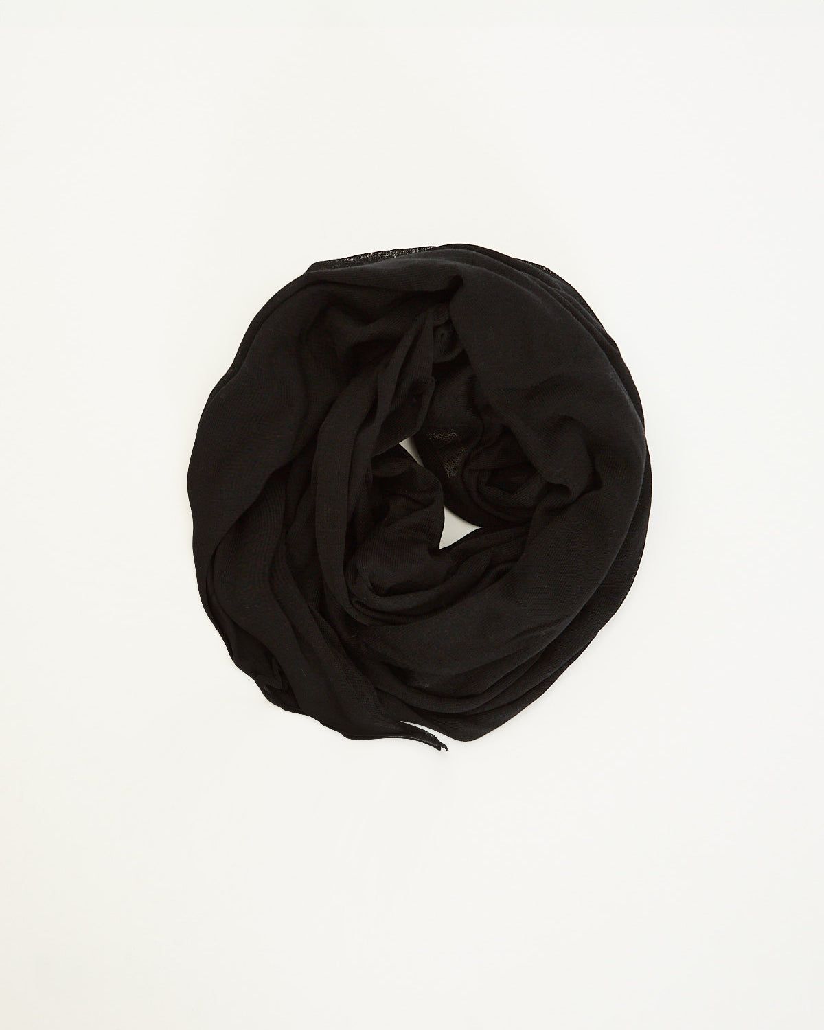 Lauren Manoogian Veil Wide Wrap in black features a large semi transparent scarf in a high gauge cotton knit with rolled edge finishing.