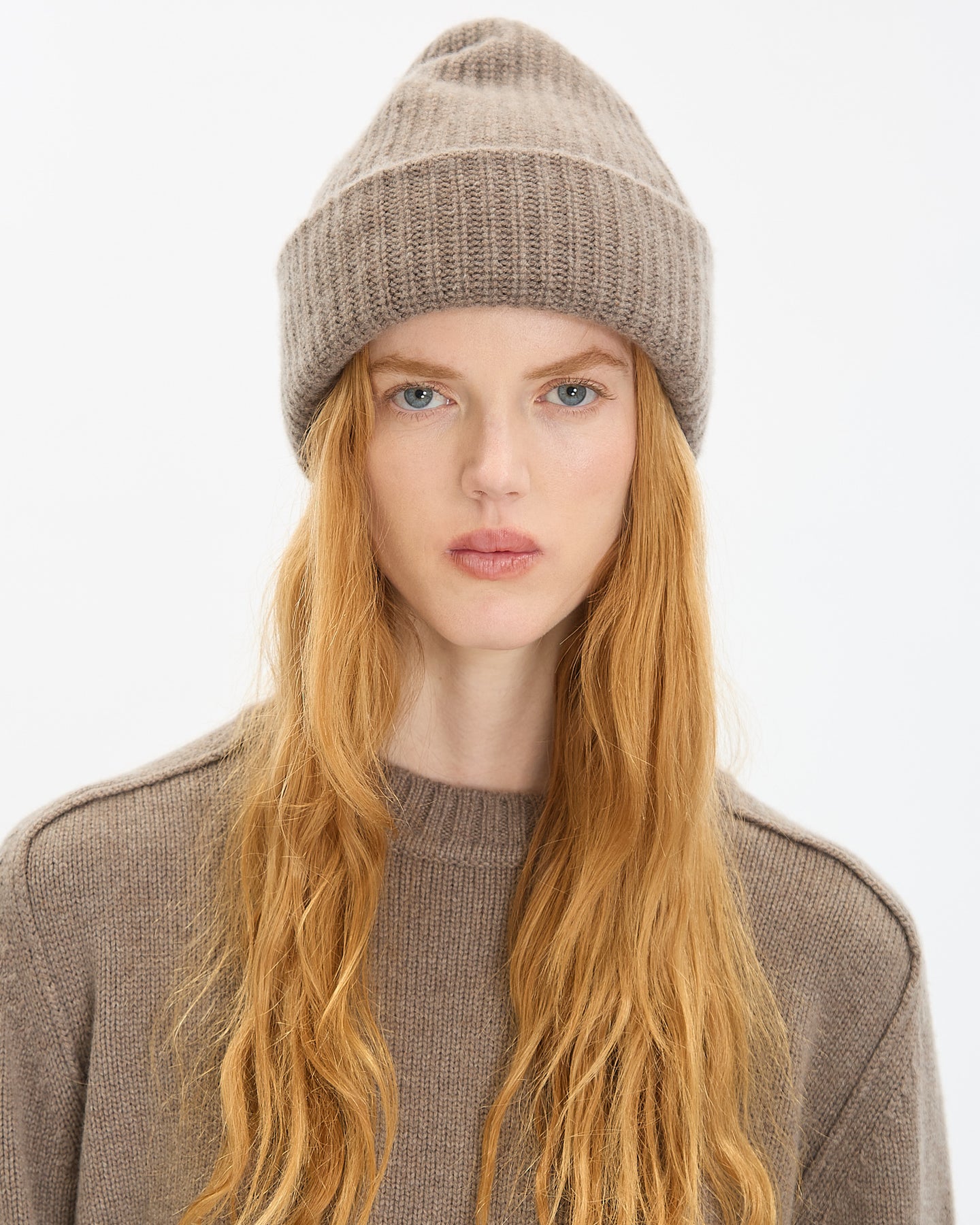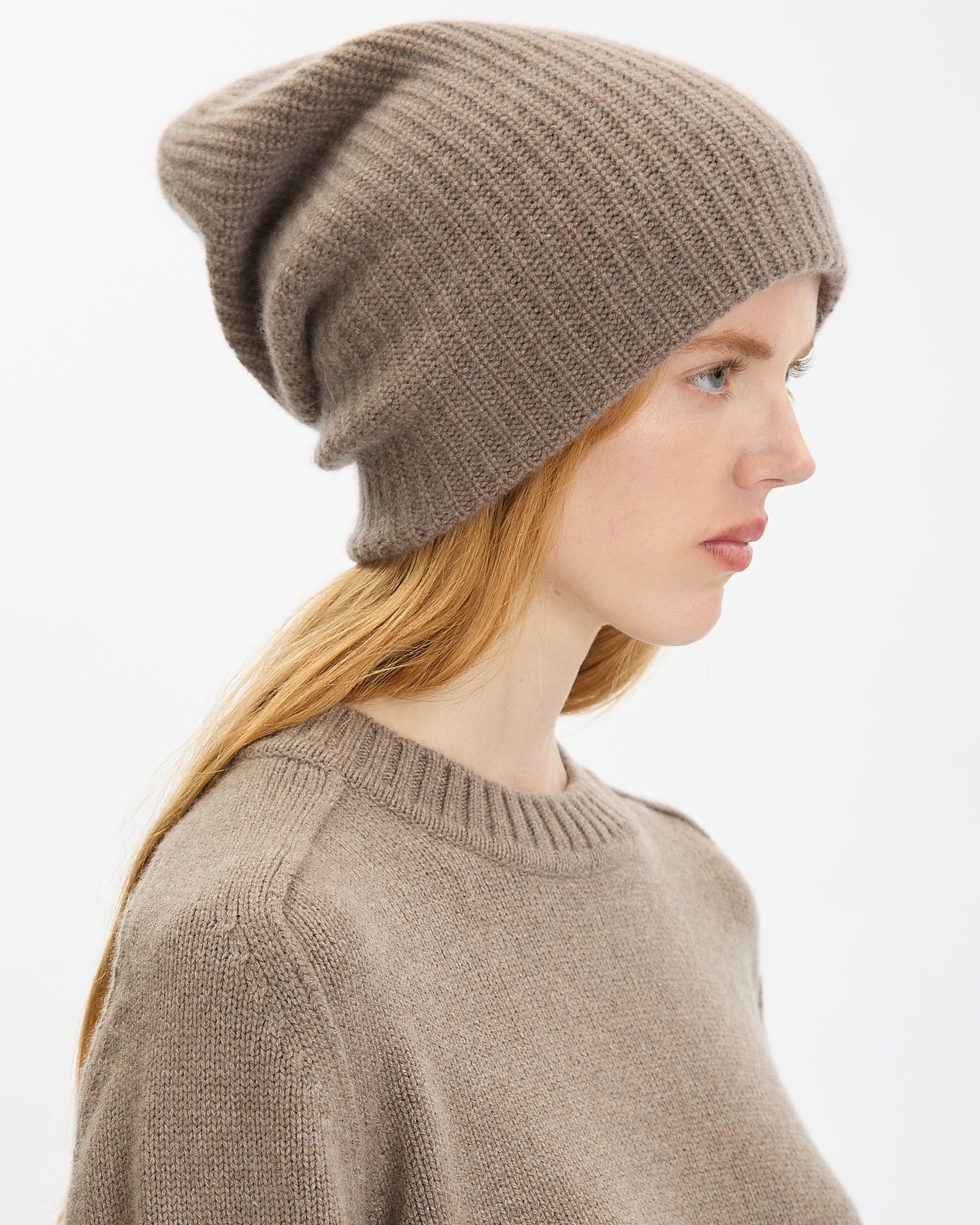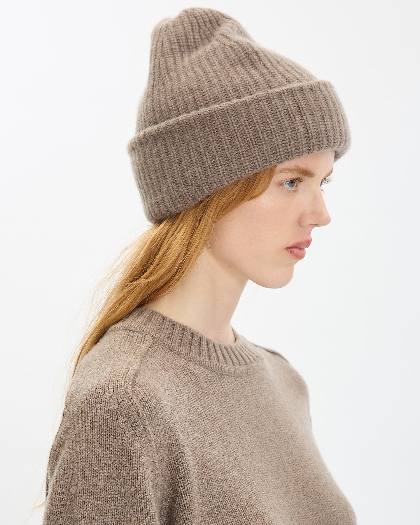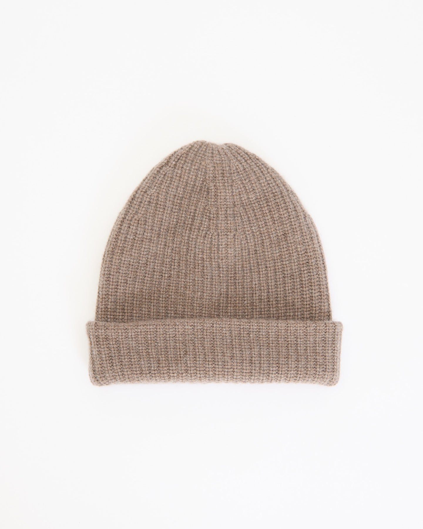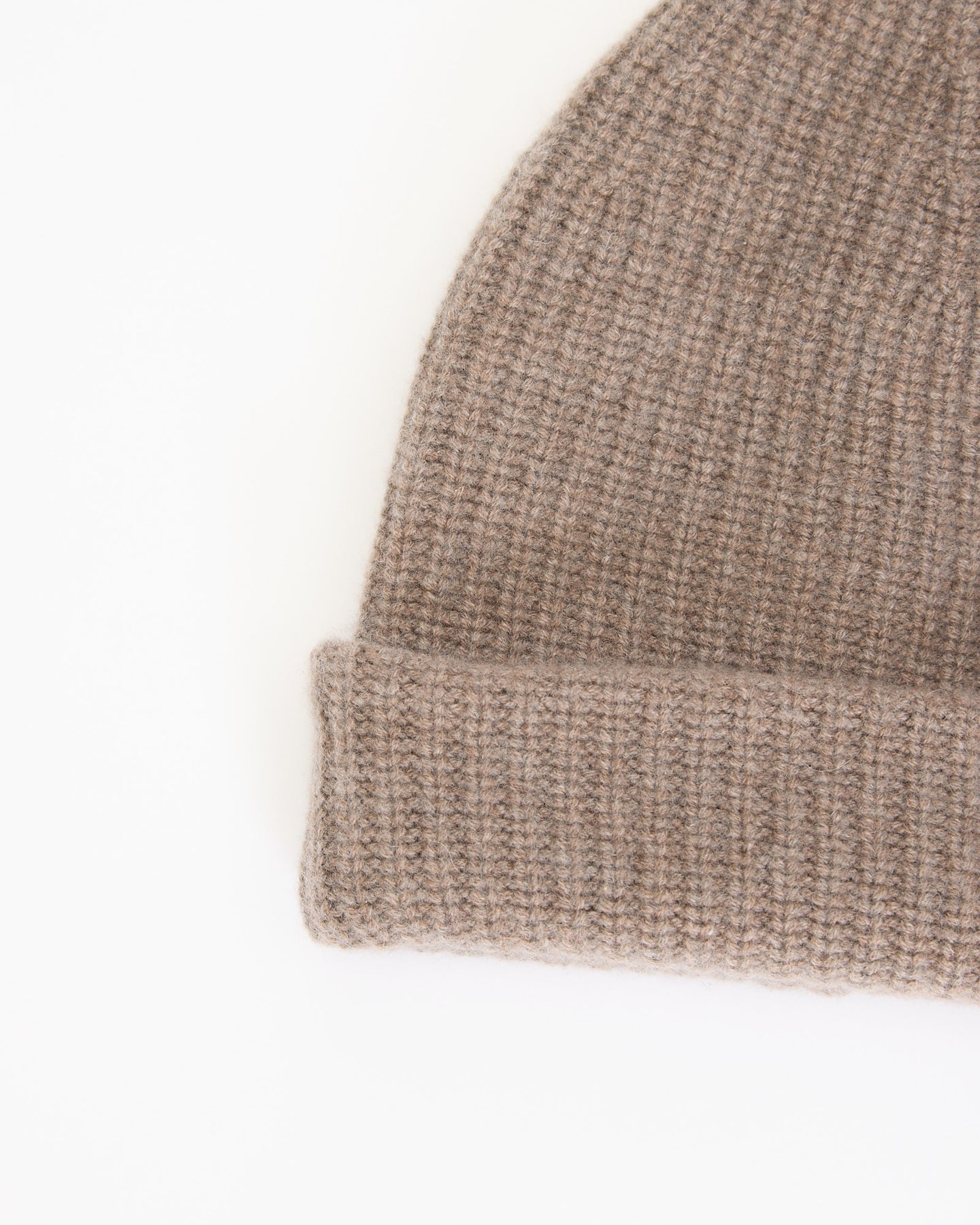 Doffer Boys Fat Hat in walrus features a double layered toque in cashmere knit with an adjustable roll cuff.