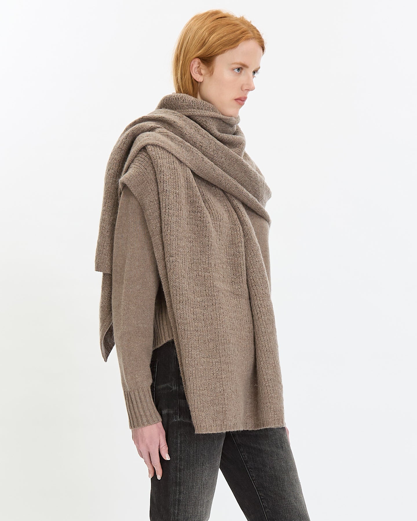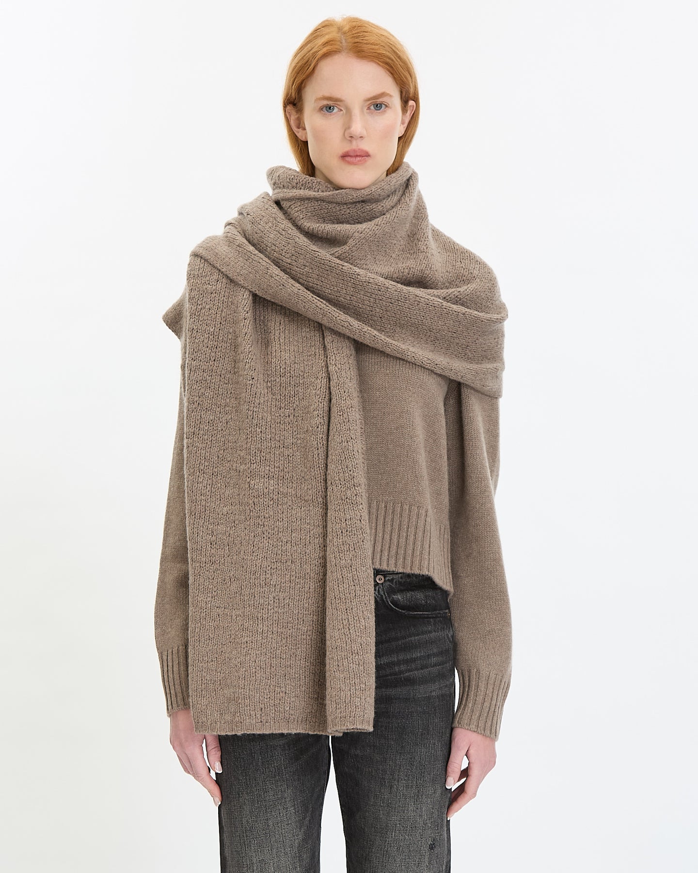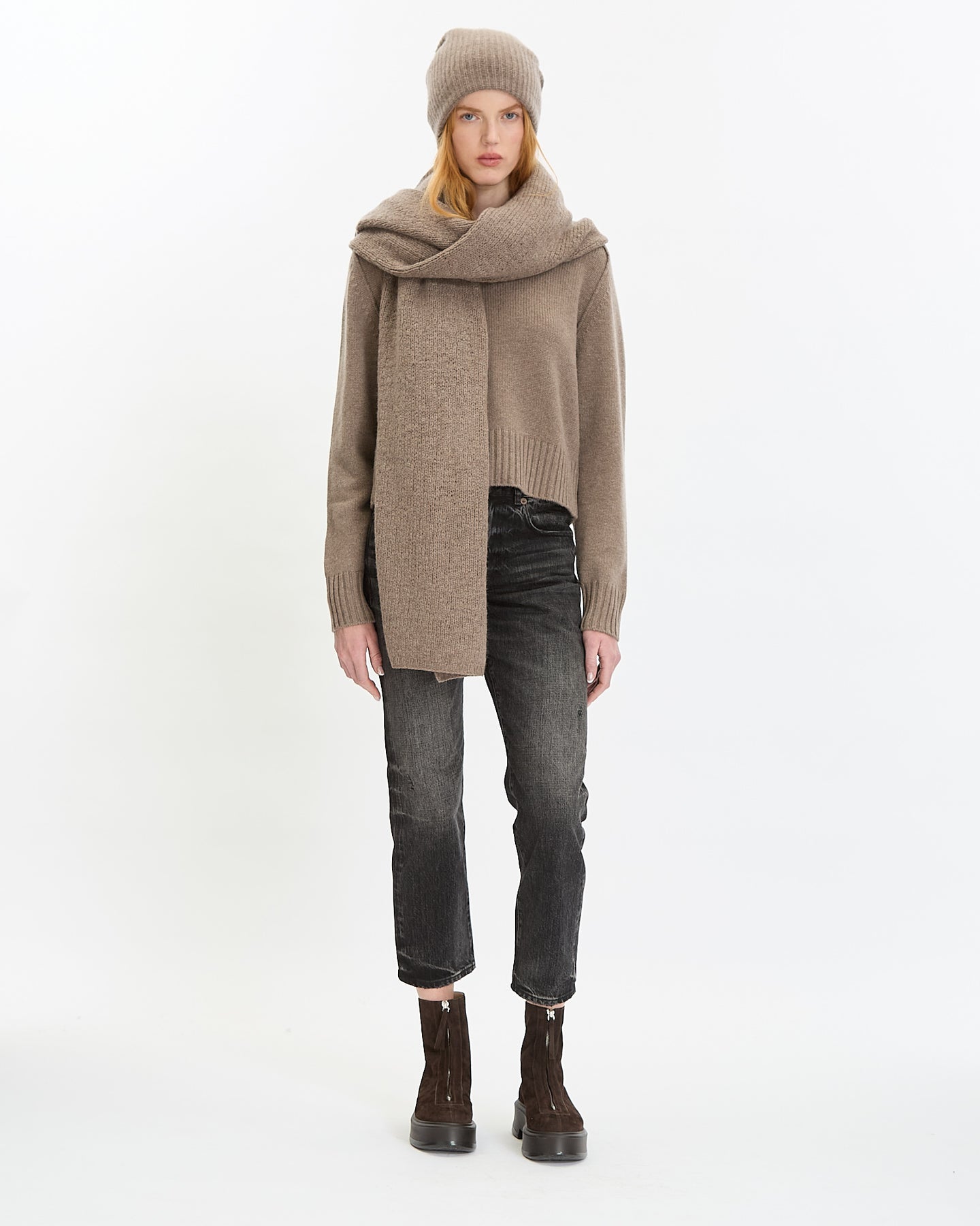 Doffer Boys Textured Knit Scarf in walrus features an oversized textured knit scarf in a mid weight cashmere fabrication.