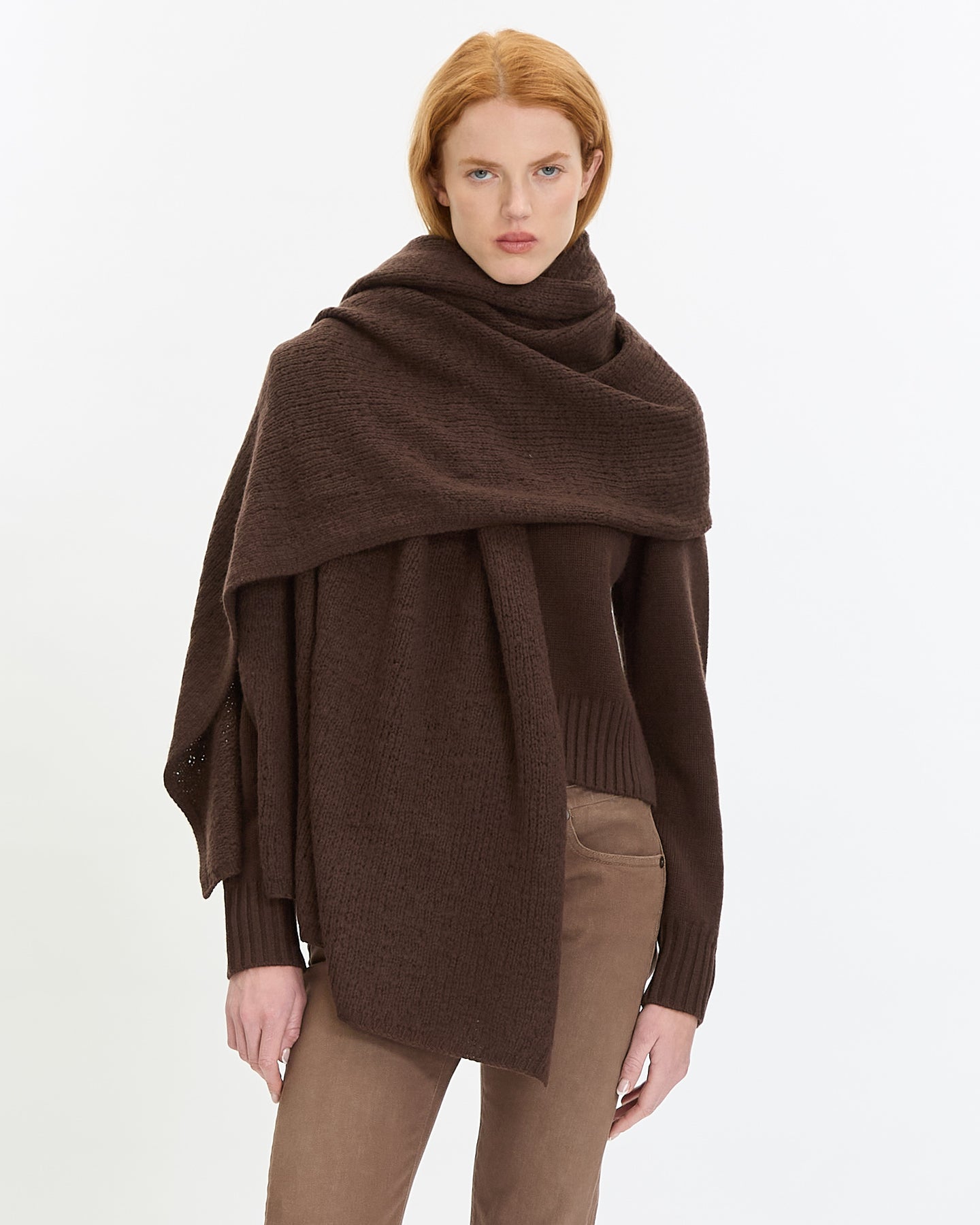 Doffer Boys Textured Knit Scarf in mocha features an oversized textured knit scarf in a mid weight cashmere fabrication.