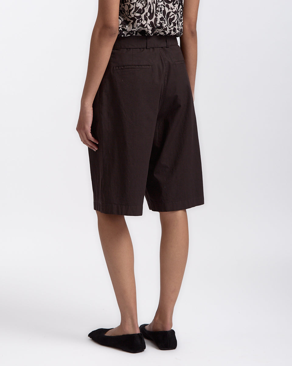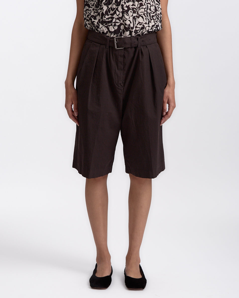 Dries Van Noten Peaches Trouser features a pleated short in a midweight cotton fabrication. Details include zip fly, button closure, front pockets and detachable belt with buckle closure.