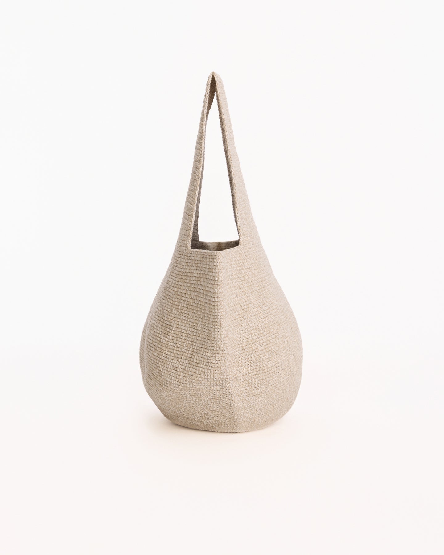 Lauren Manoogian Crochet Vessel Bag in bone marl features a circular tote in a handknit fabrication. Details include large base and large shoulder strap.