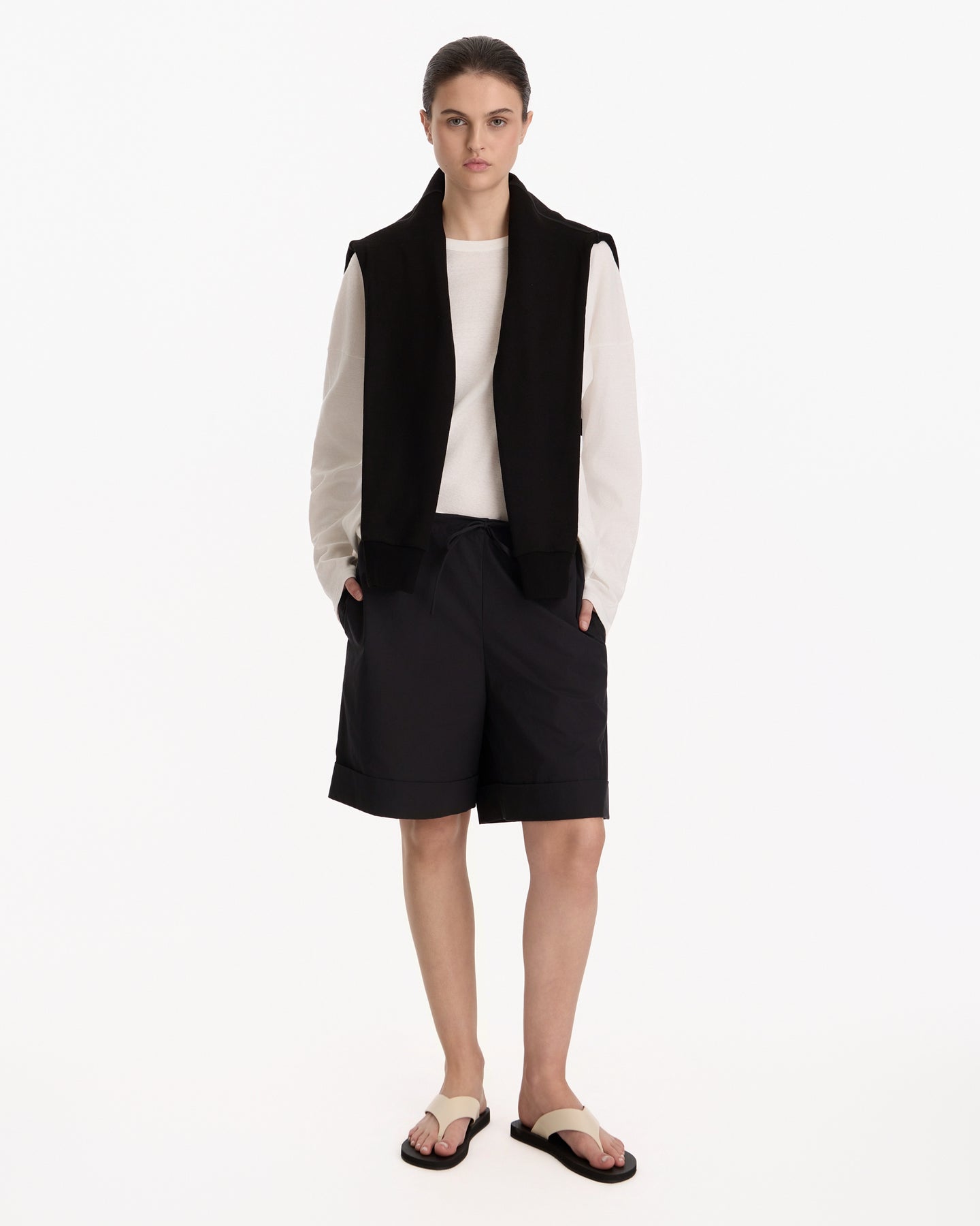 The Row Floris Top in white features a long sleeved crewneck in a Japanese cotton jersey fabrication. Details include dropped shoulders, relaxed fit and ribbed neckline.