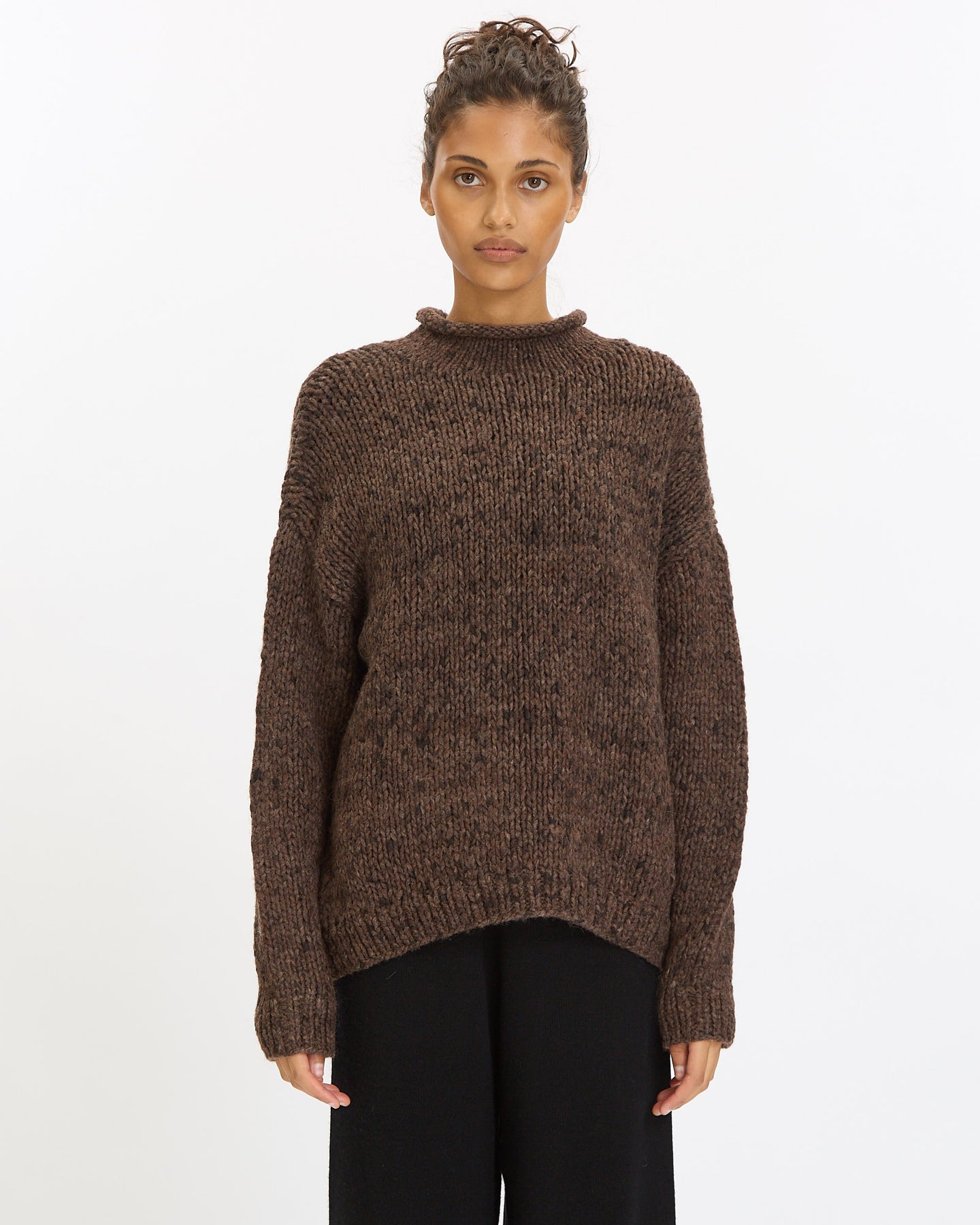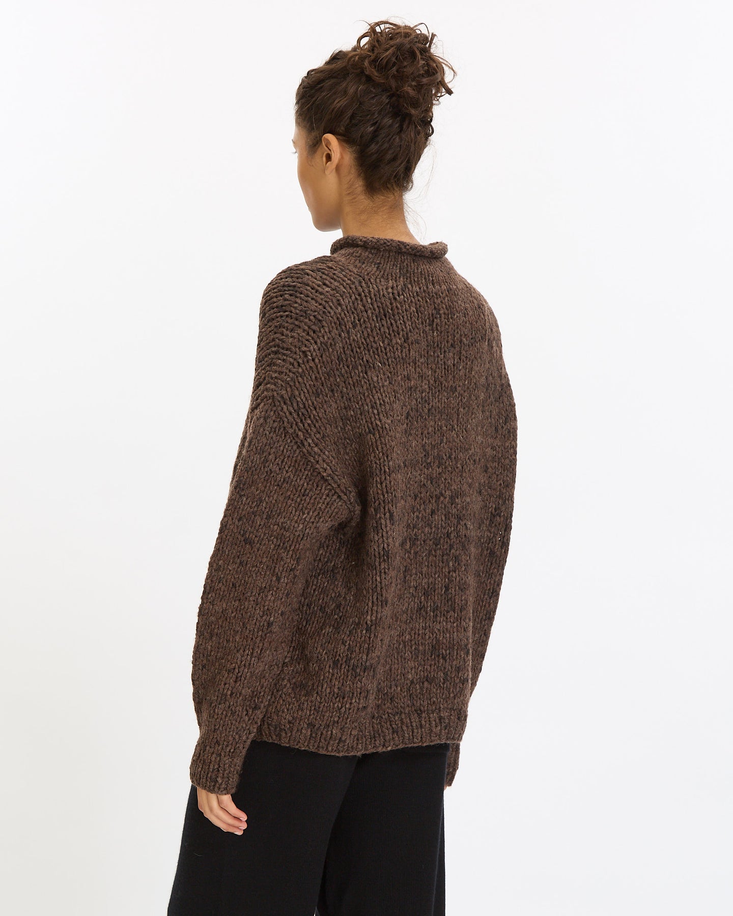 Lauren Manoogian Handknit Paint Rollneck in black paint features an oversized silhouette in a hand painted and hand knit fabrication. Details include roll neckline, drop shoulders and seamless construction.