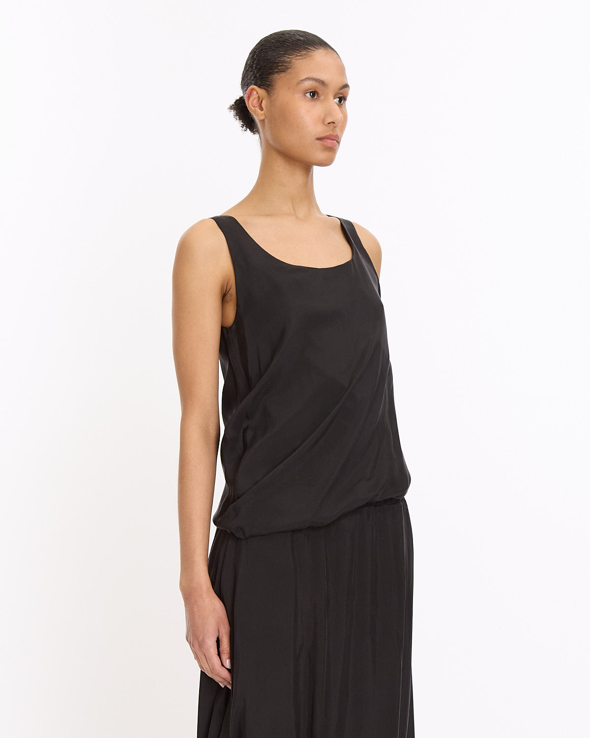 Lauren Manoogian Balloon Tank in black features a classic tank silhouette. Details include double layer construction, in a high gauge fine knit grade alpaca.