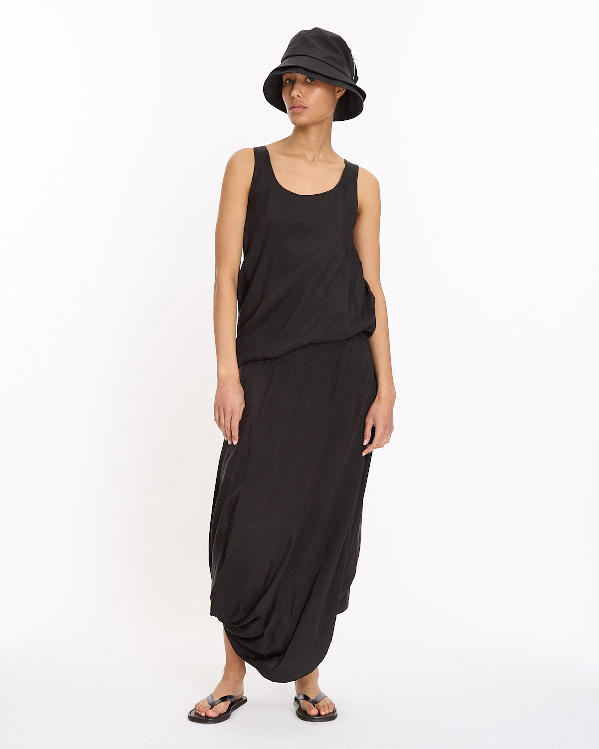 Styled with Sacai Pocket Double Brim Hat, Lauren Manoogian Balloon Skirt and The Row City Flip Flop