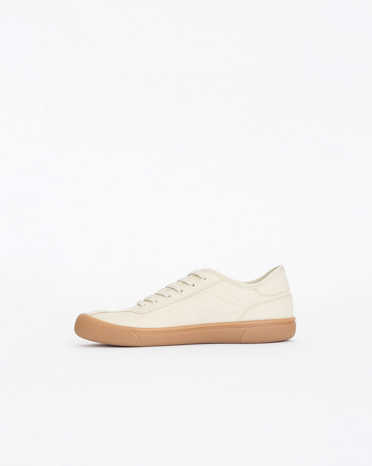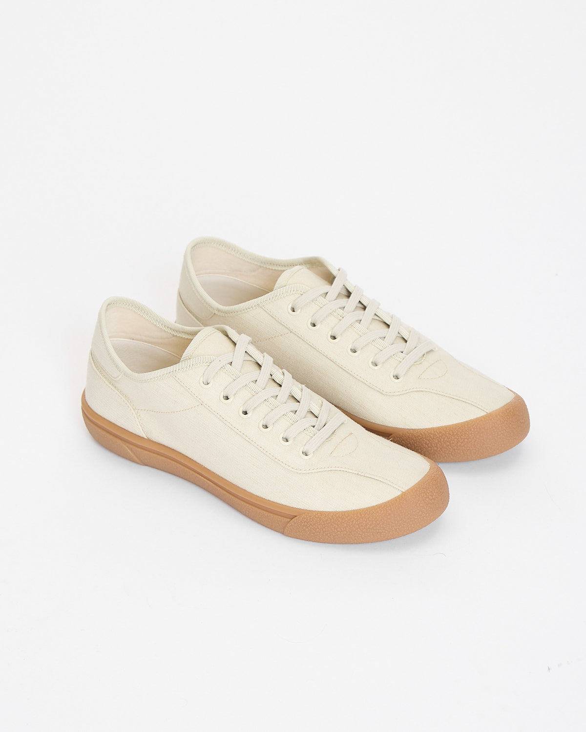 The Row Canvas Sneaker in sage tint features a low top design. Details include tonal grosgrain trim, tonal laces and textured rubber sole.