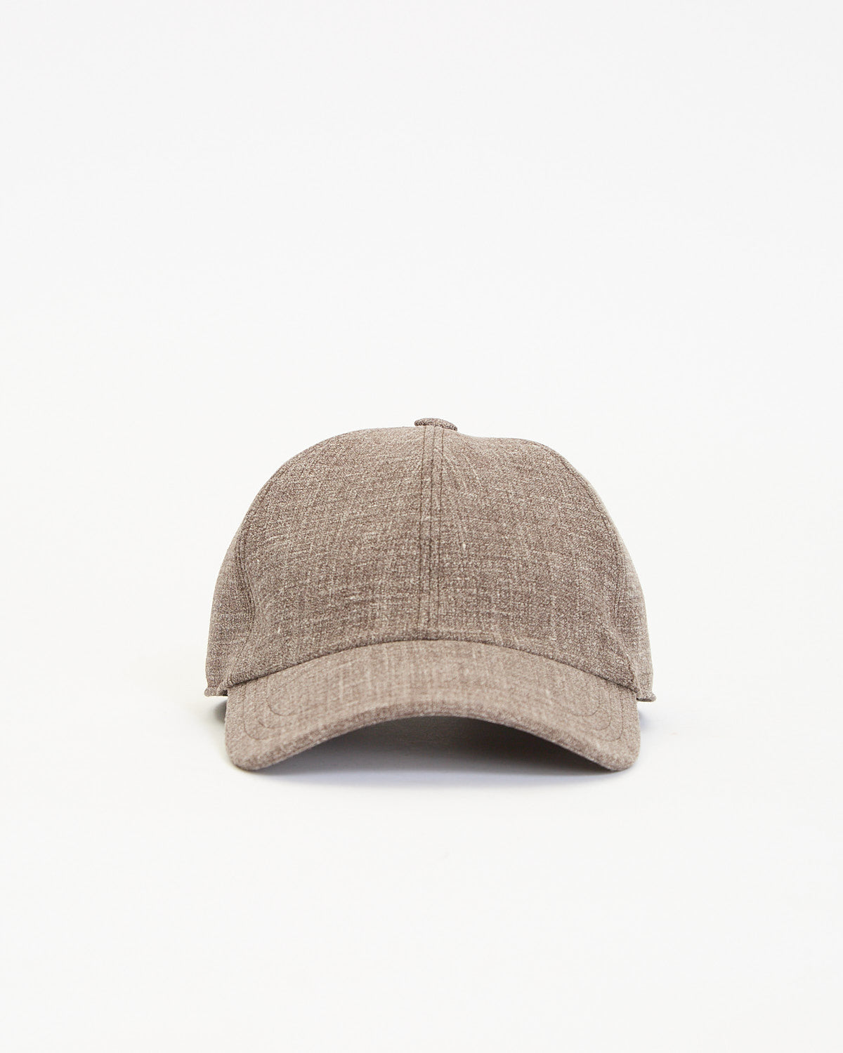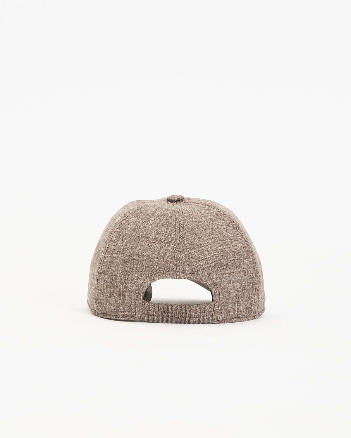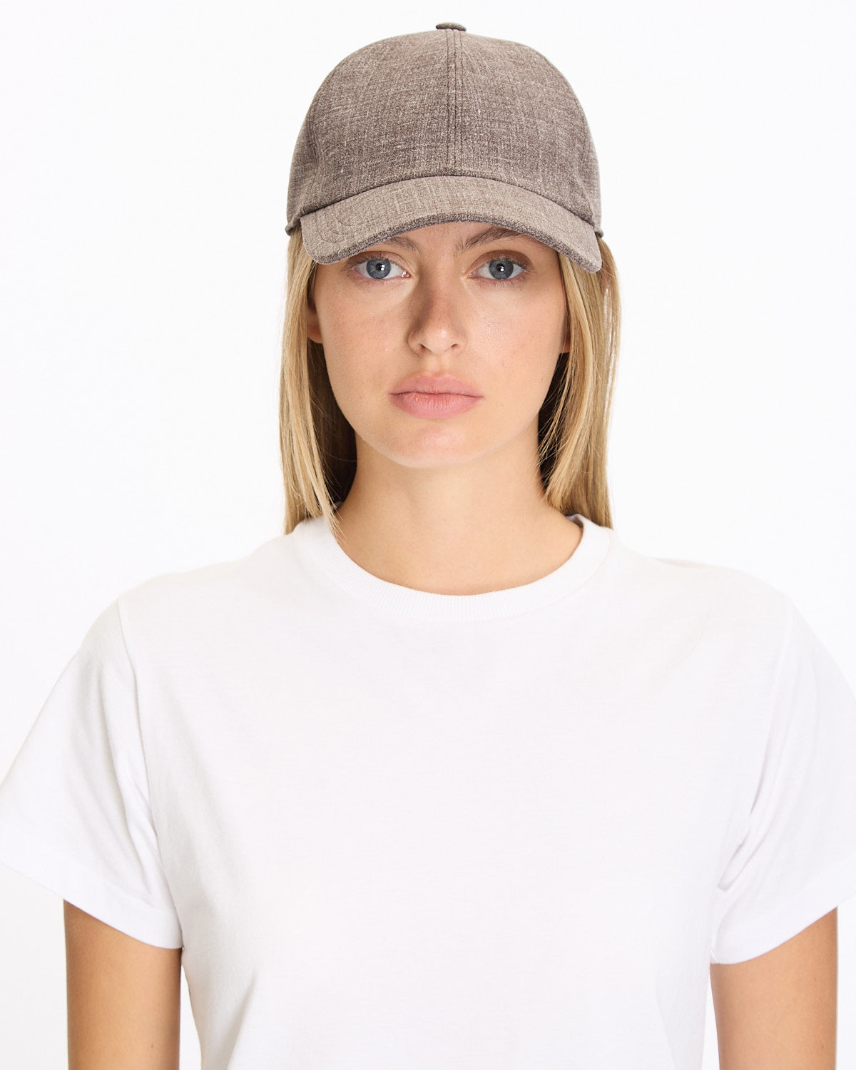 The Row Caspian Hat in dark coffee features a twill fabrication. Details include curved brim and elasticized strap at back face.