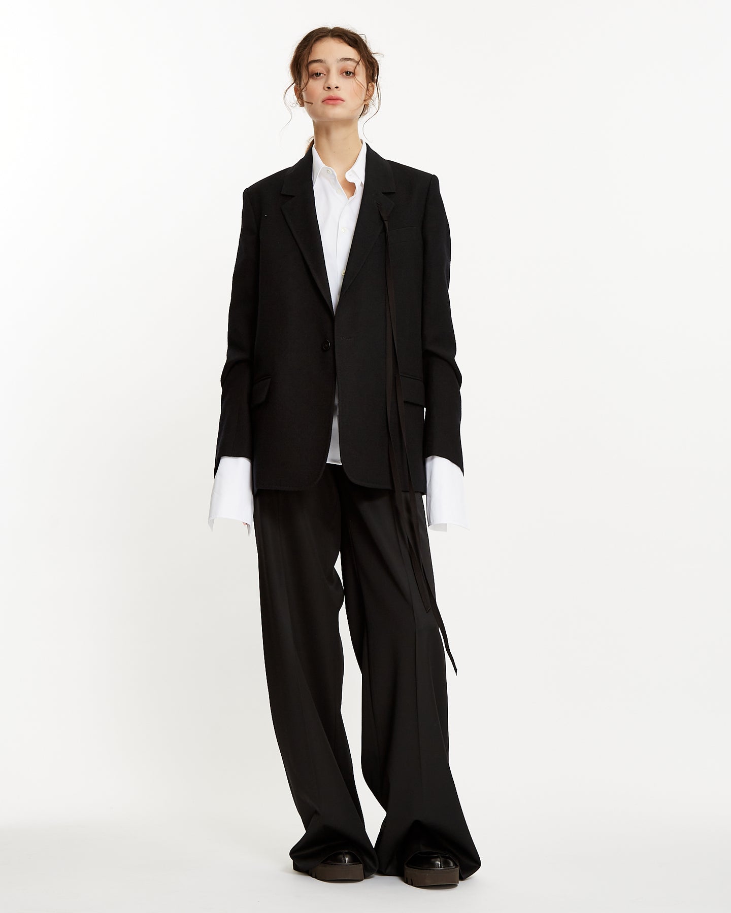Styled with Ann Demeulemeester Sofia Jacket, Ann Demeulemeester Evelien Trouser and Dries Van Noten Derby