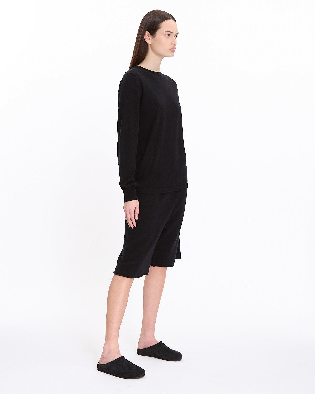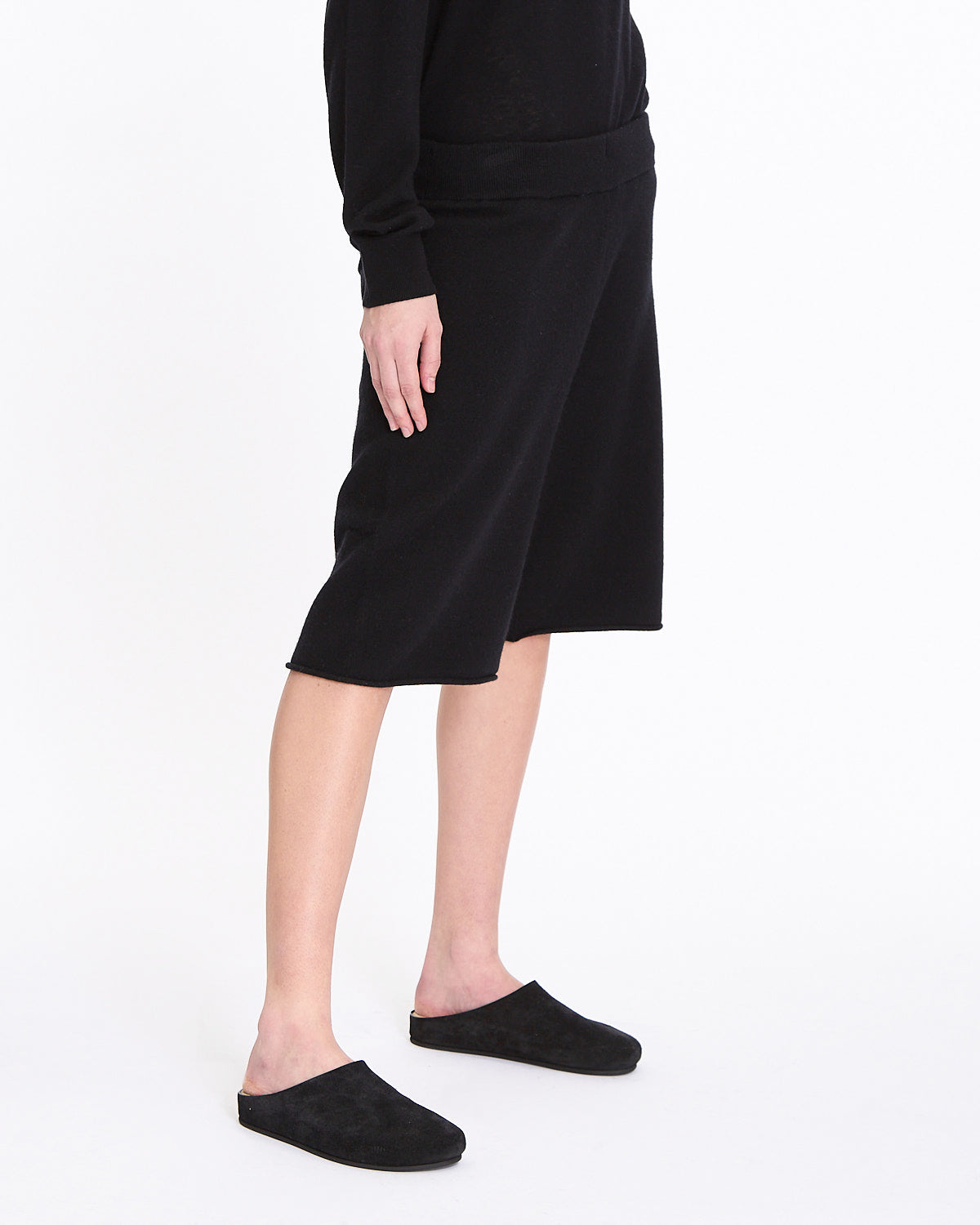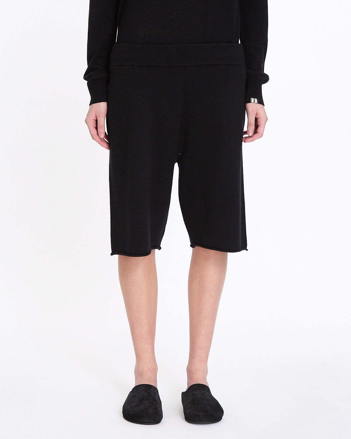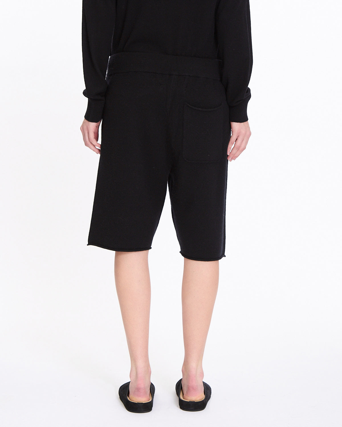 Extreme Cashmere N°240 Laufen Short in raven features a relaxed fit in a heavyweight cashmere blend fabrication. Details include elastic waistband with adjustable drawstring, back patch pockets and roll-edge hem finishing.