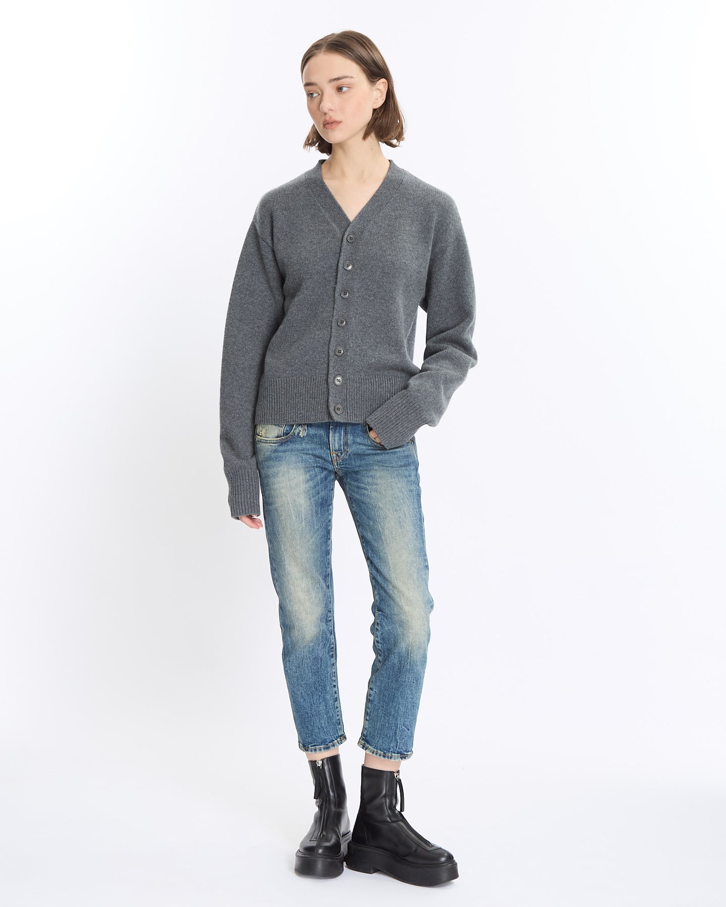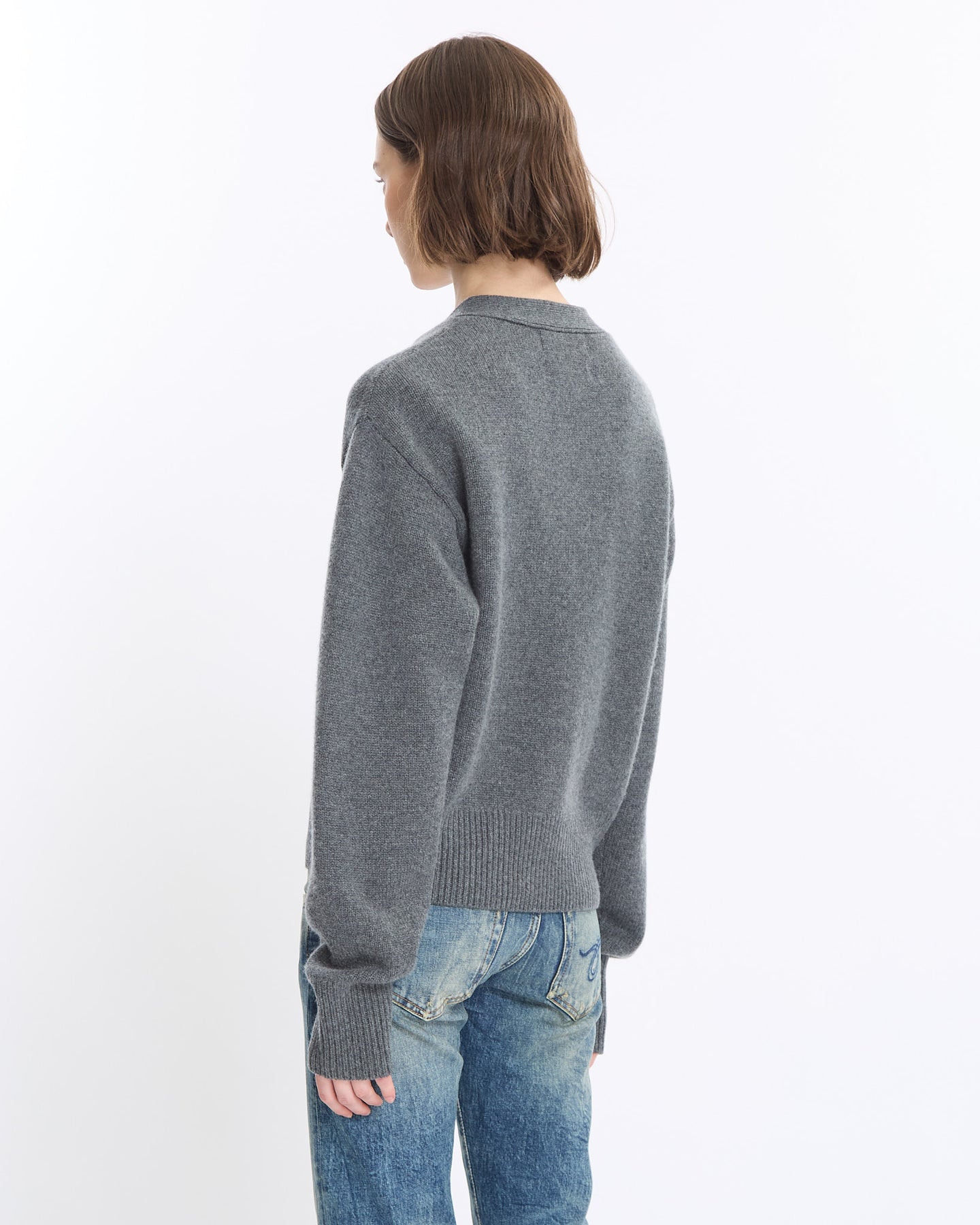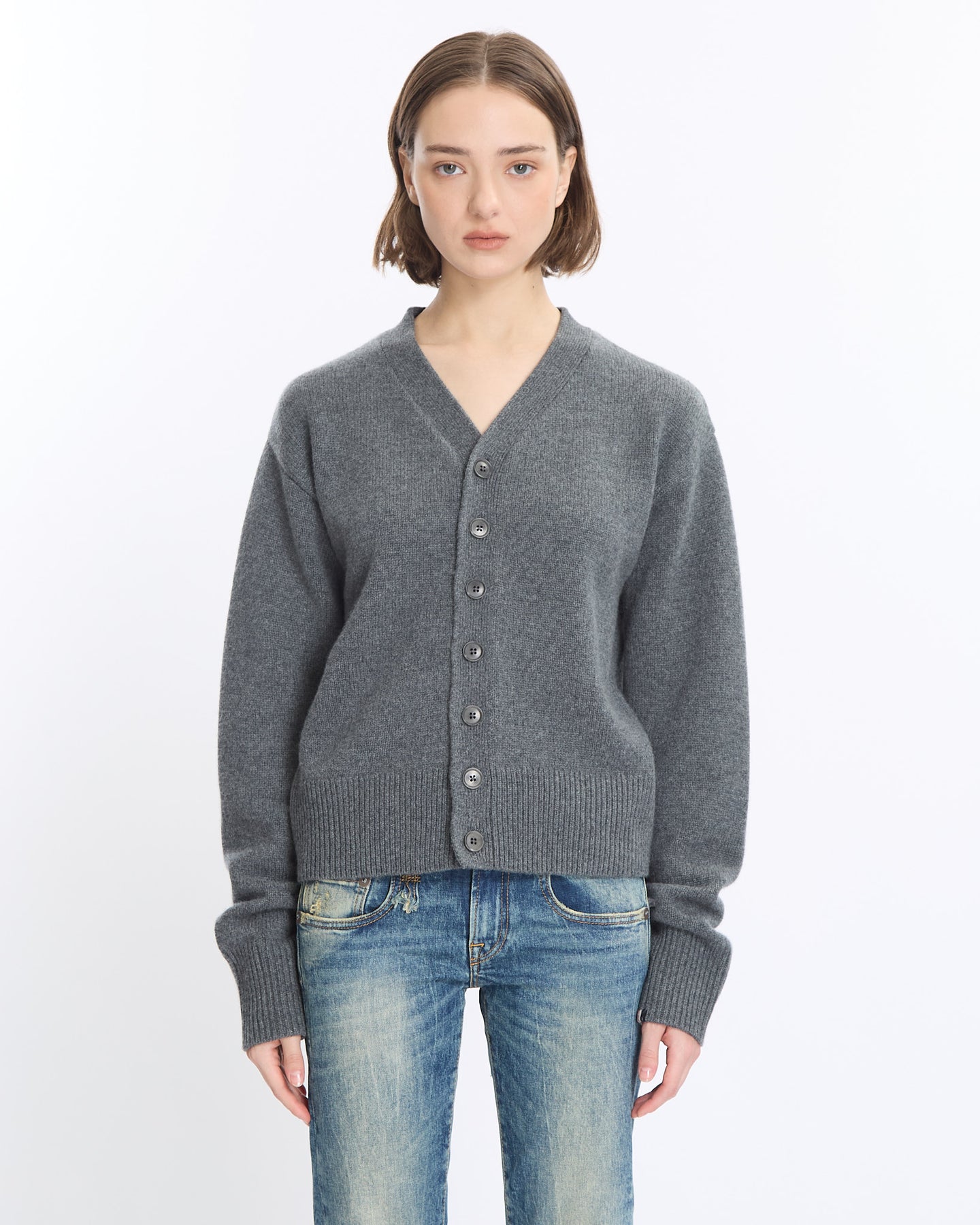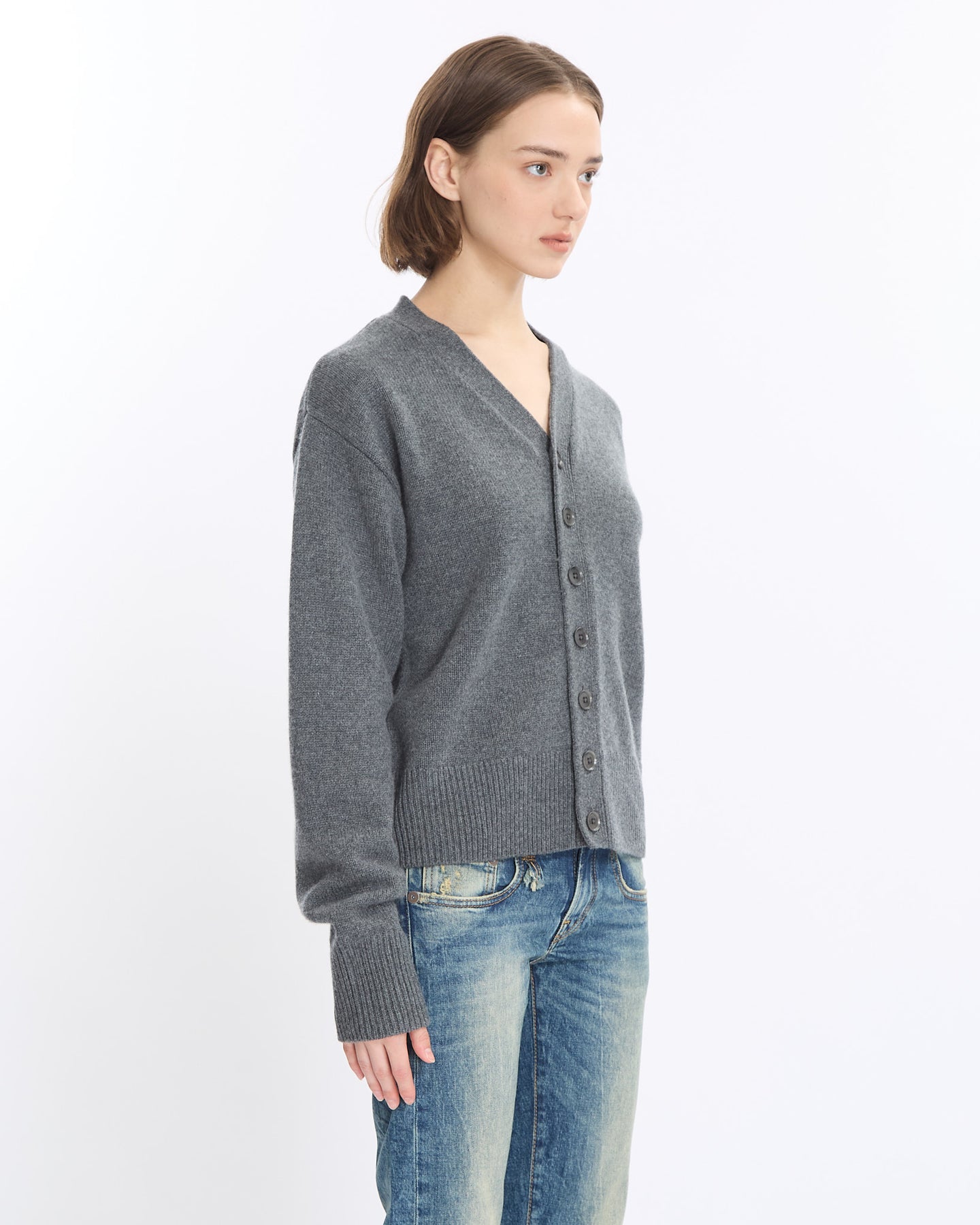 Extreme Cashmere N°309 Clover in felt features a shrunken boxy fit. Details include heavy-knit cashmere knit, voluminous sleeves and eight buttons, made of highly durable corozo.