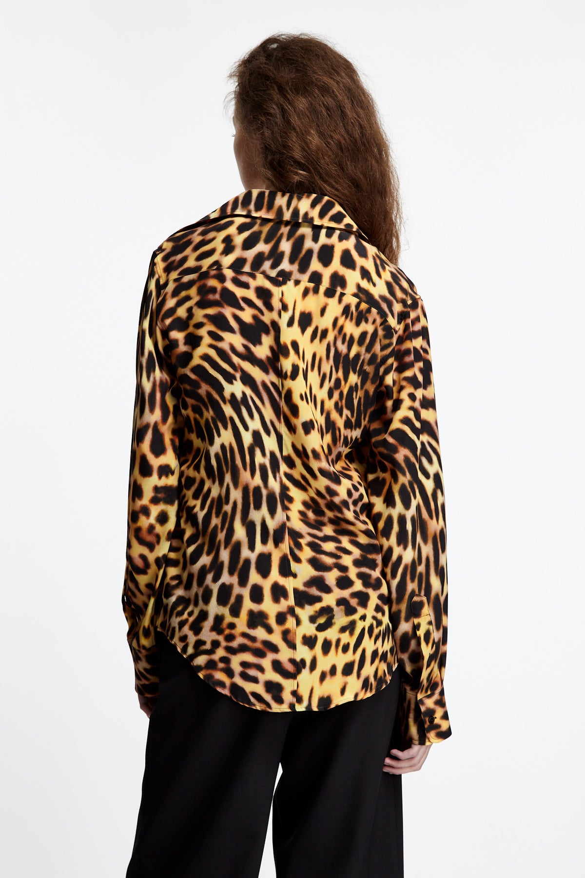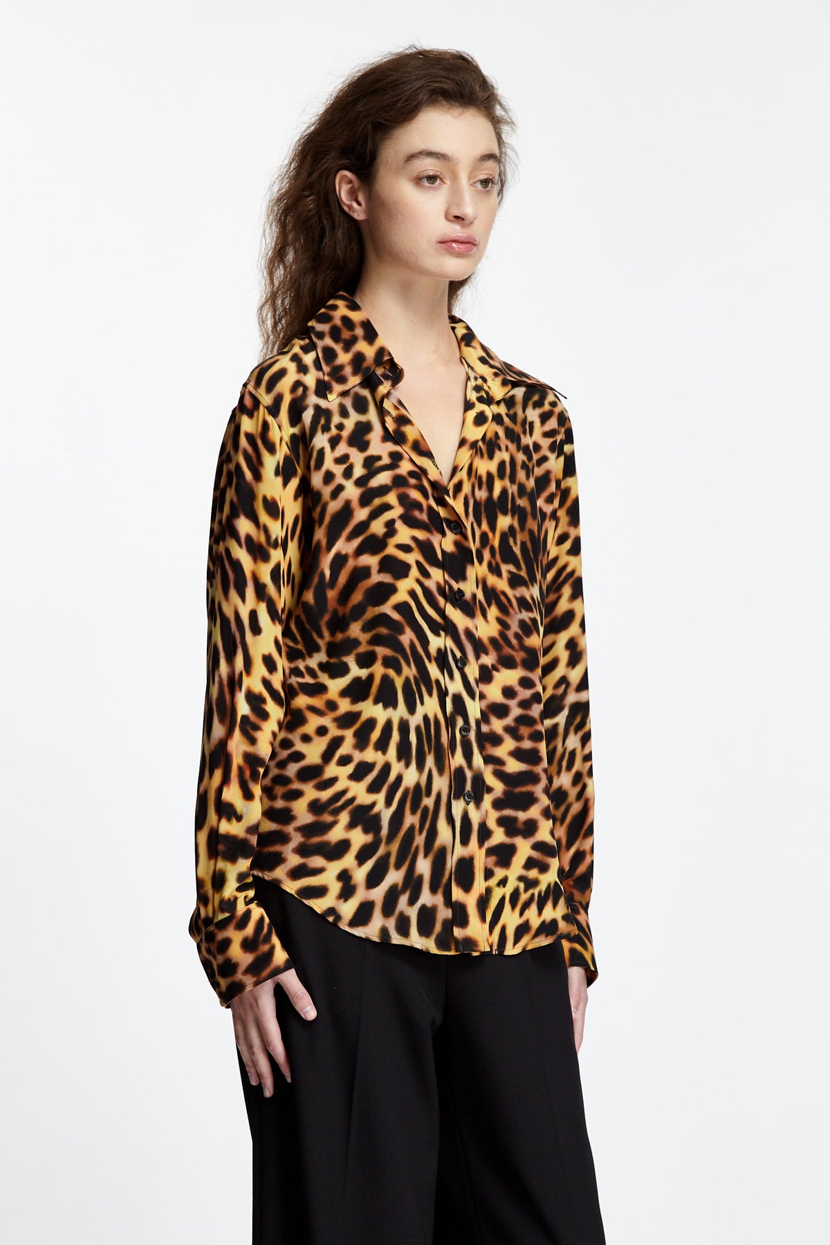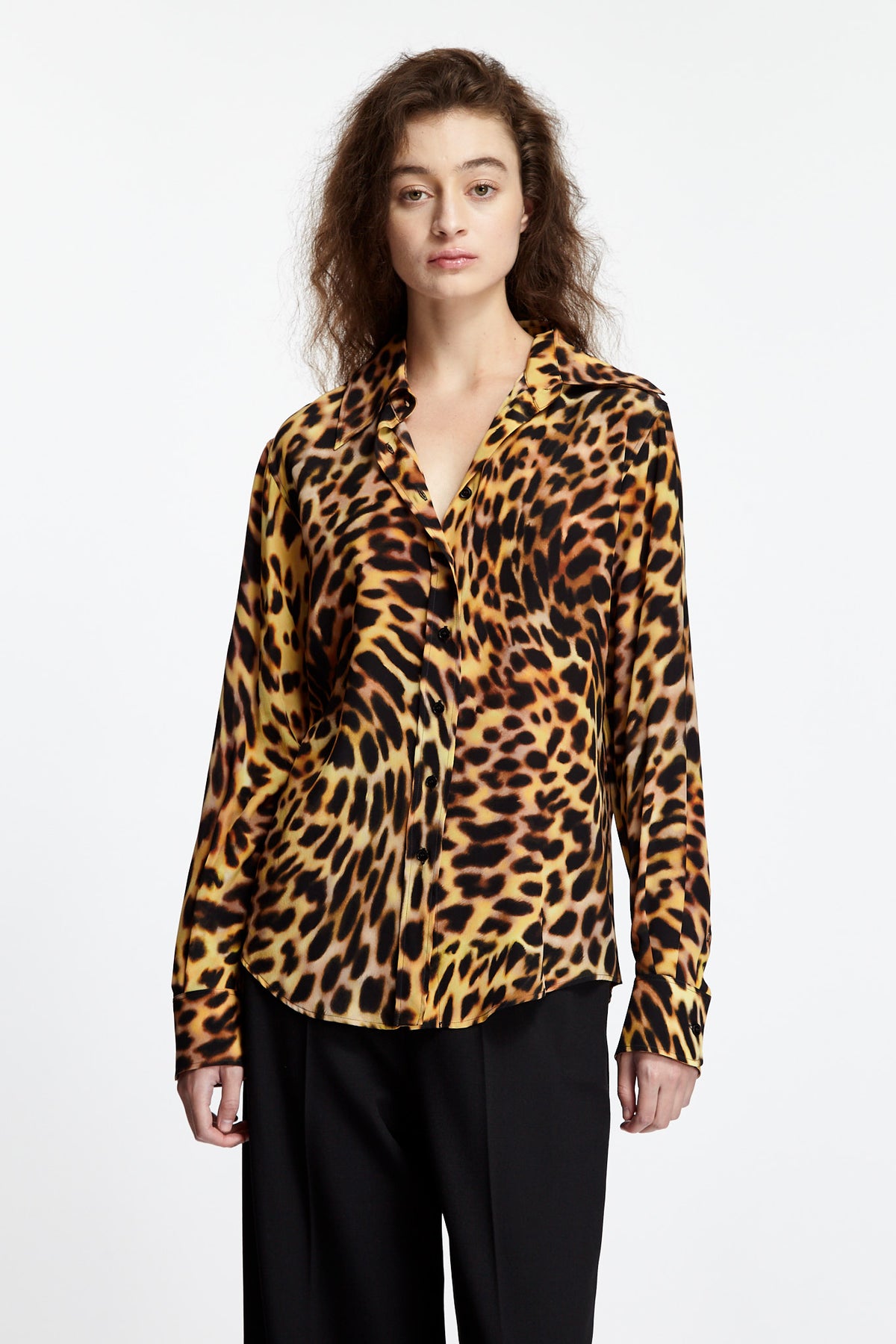 Stella McCartney Relaxed Shirt in tortoise features a relaxed silhouette. Details include a classic collar shirt with front button closure and button cuffs.