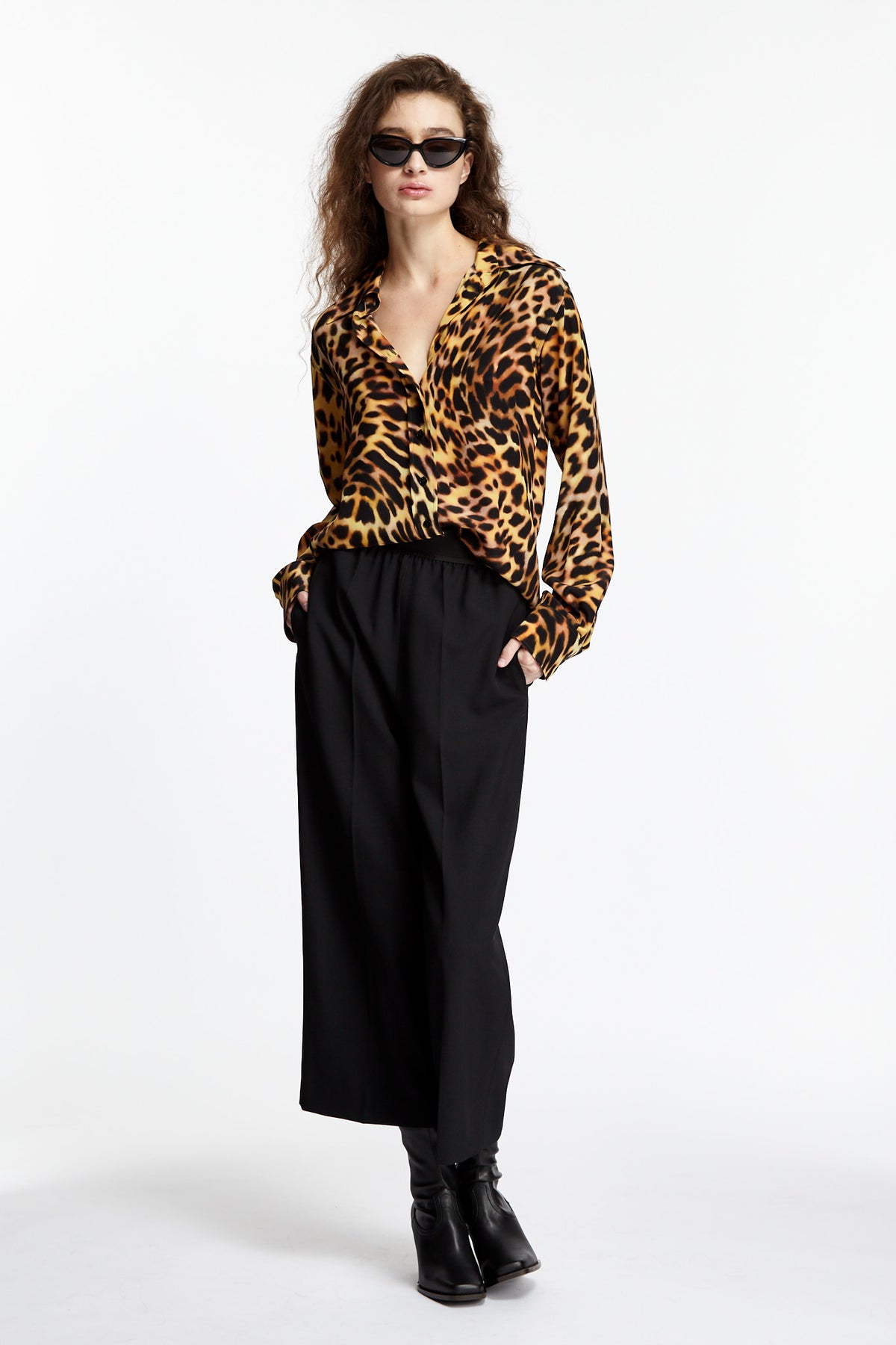 Styled with Stella McCartney Twill Trouser, Stella McCartney Cowboy Boot and Balenciaga Tip Cat 2.0 Sunglasses