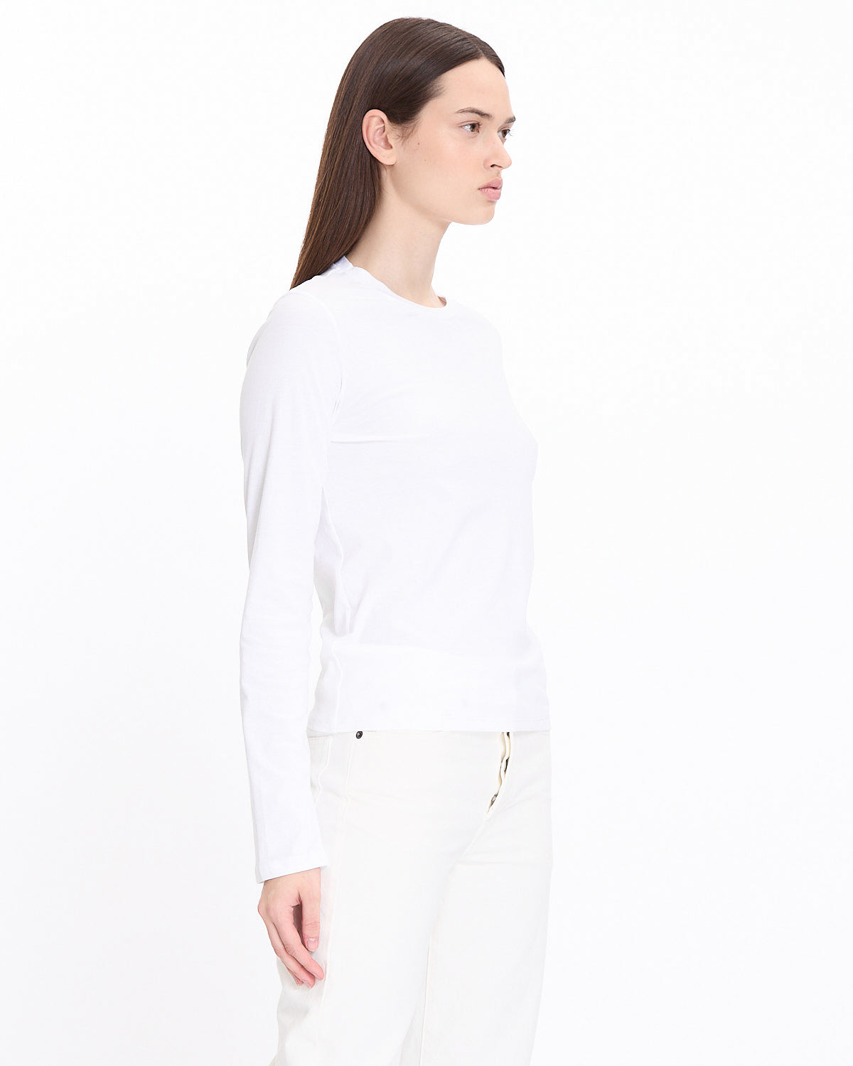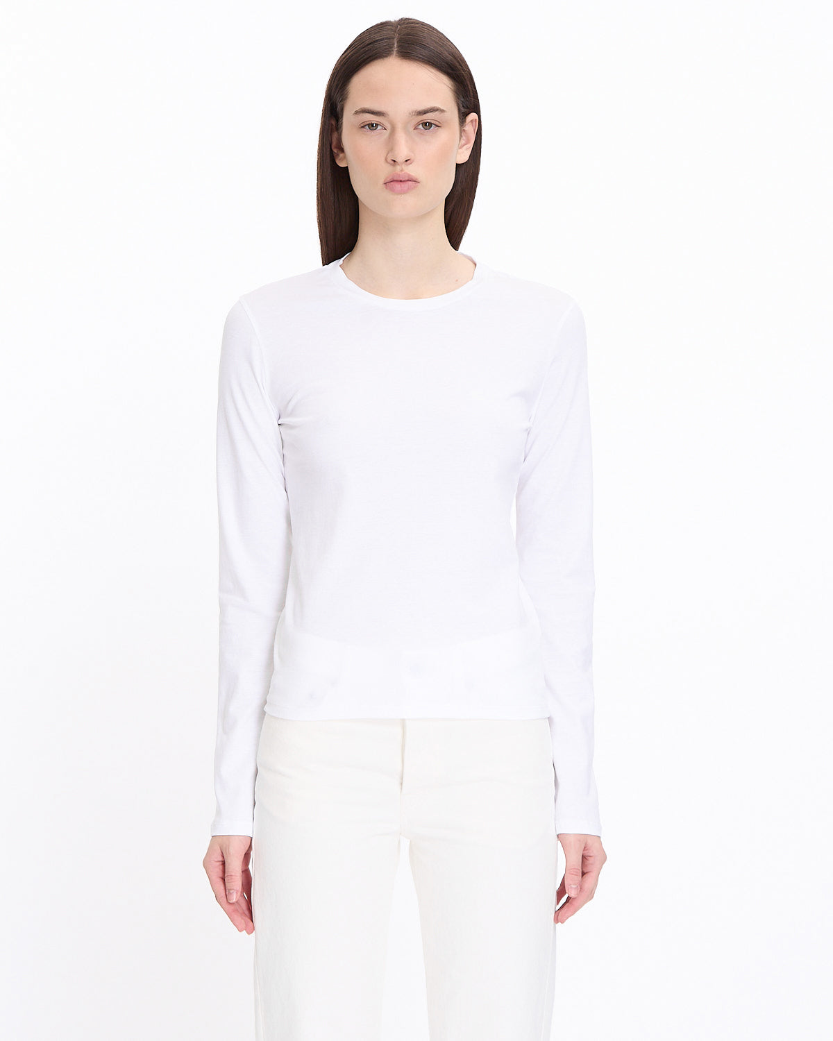 The Row Sherman T-Shirt in white features a relaxed fit in a cotton jersey fabrication. Details include long sleeves, crew neckline and classic centre back seam.