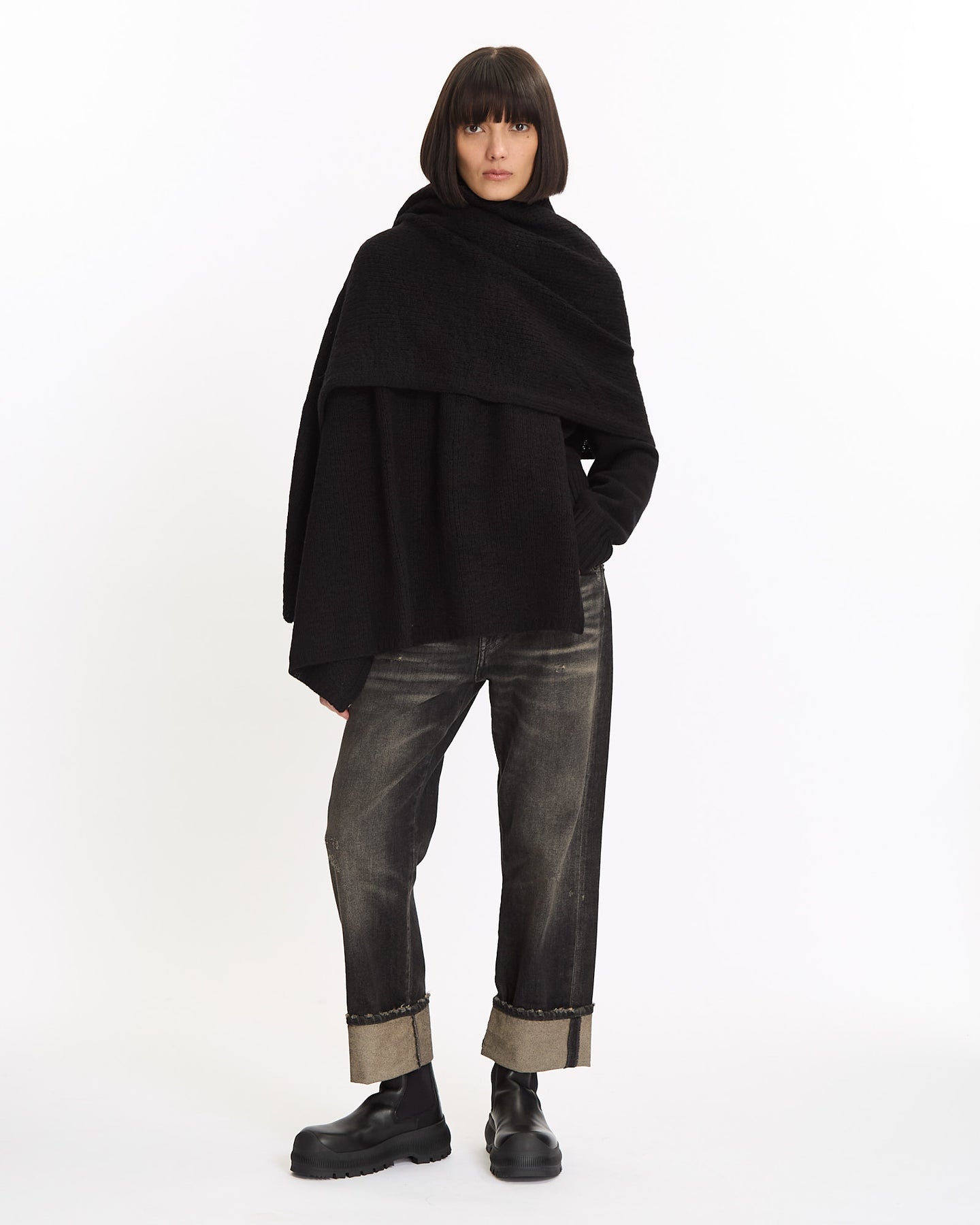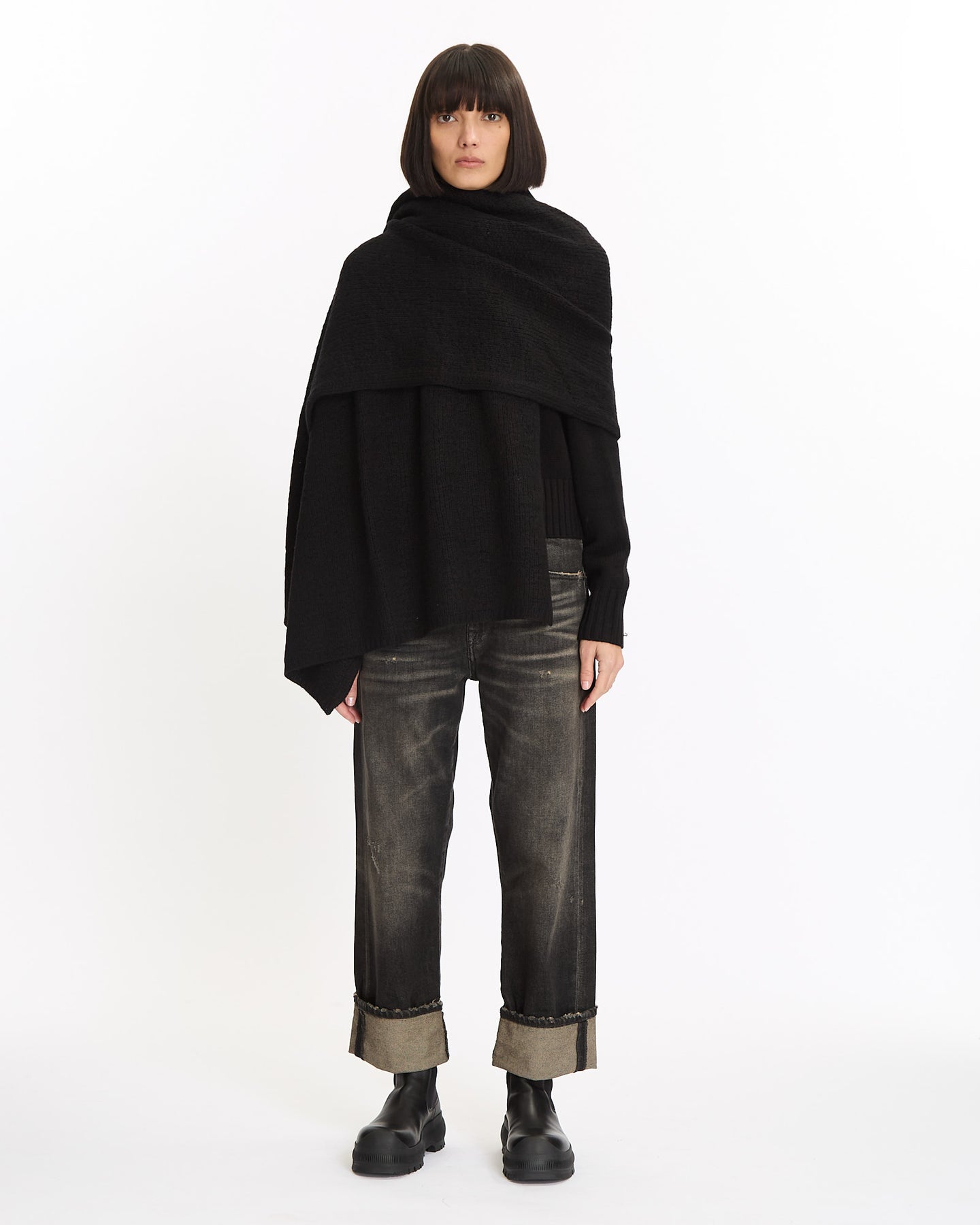 Doffer Boys Textured Scarf in black features an oversized textured knit scarf in midweight cashmere.