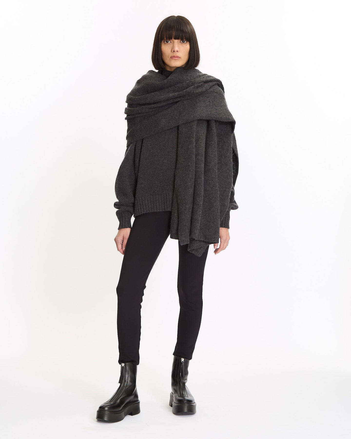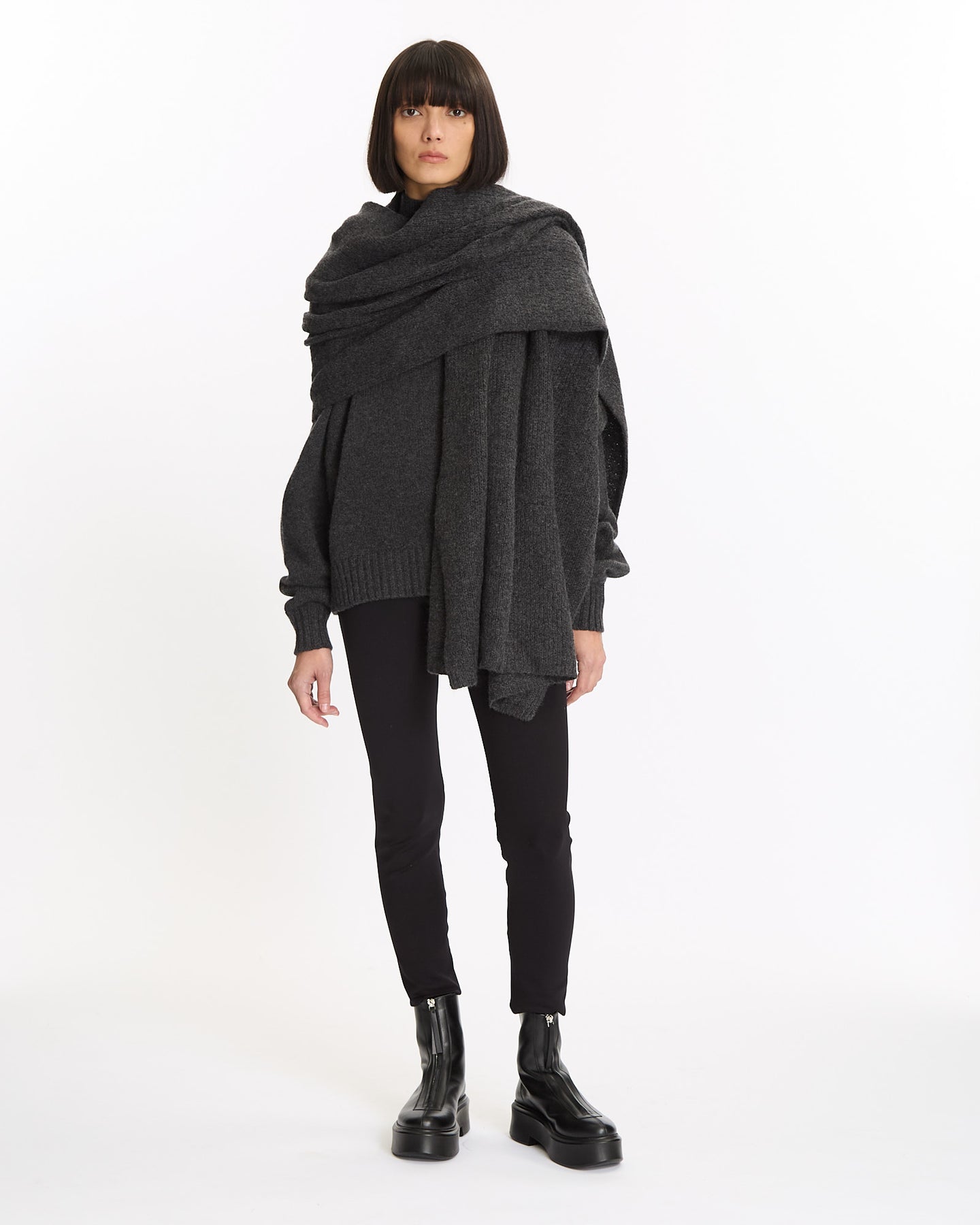 Doffer Boys Textured Scarf in charcoal features an oversized textured knit scarf in midweight cashmere.