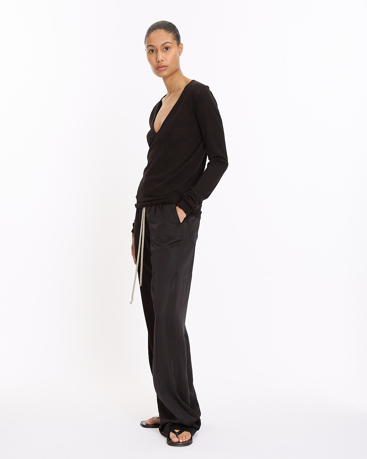 Styled with Rick Owens Dietrich Drawstring and The Row City Flip Flop