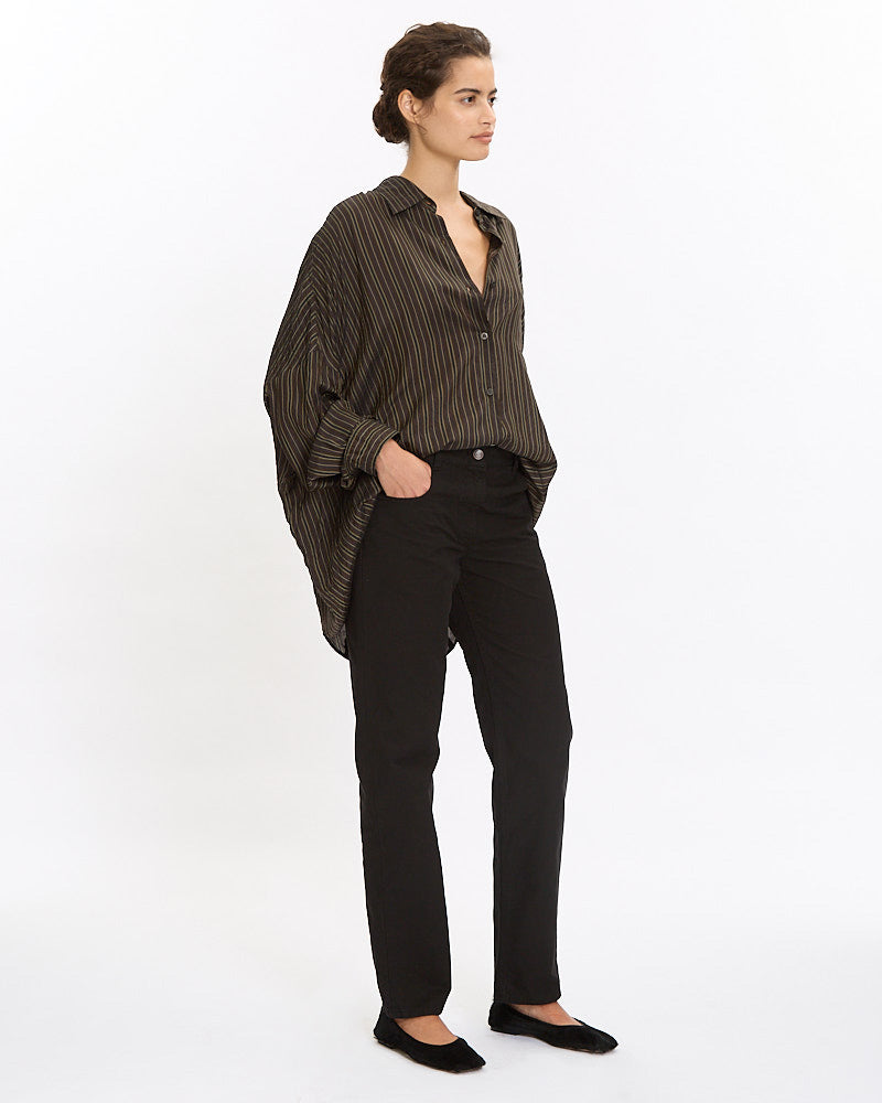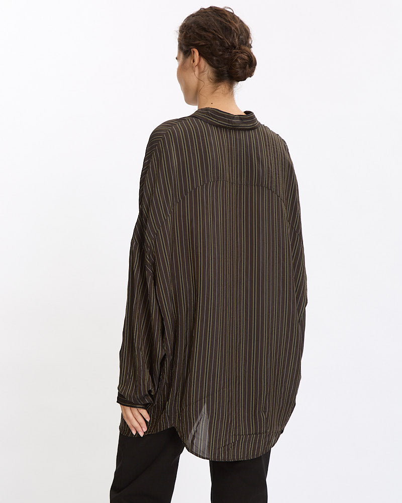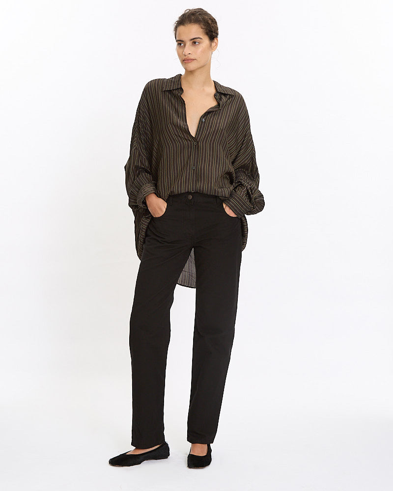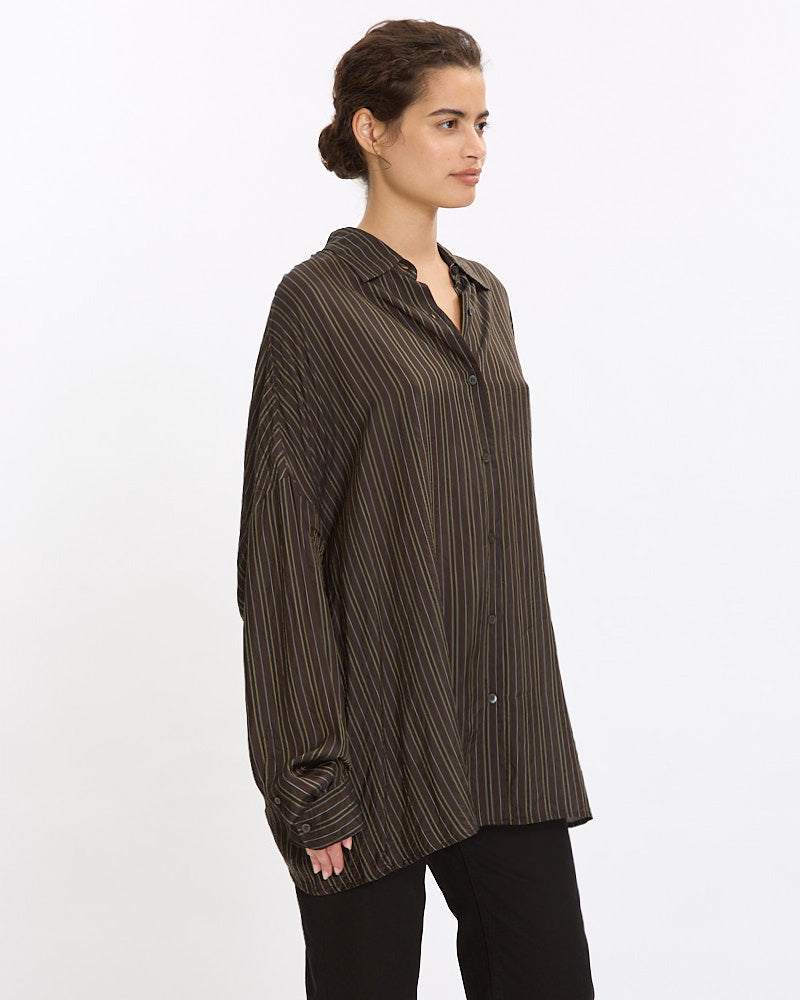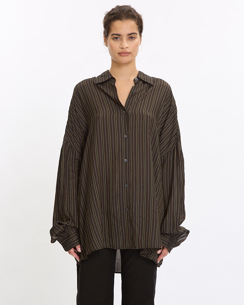 Dries Van Noten Casia Shirt in brown features a loose fit in a lightweight cotton-blend fabrication. Details include a pointed collar, button-down front, and button cuffs.