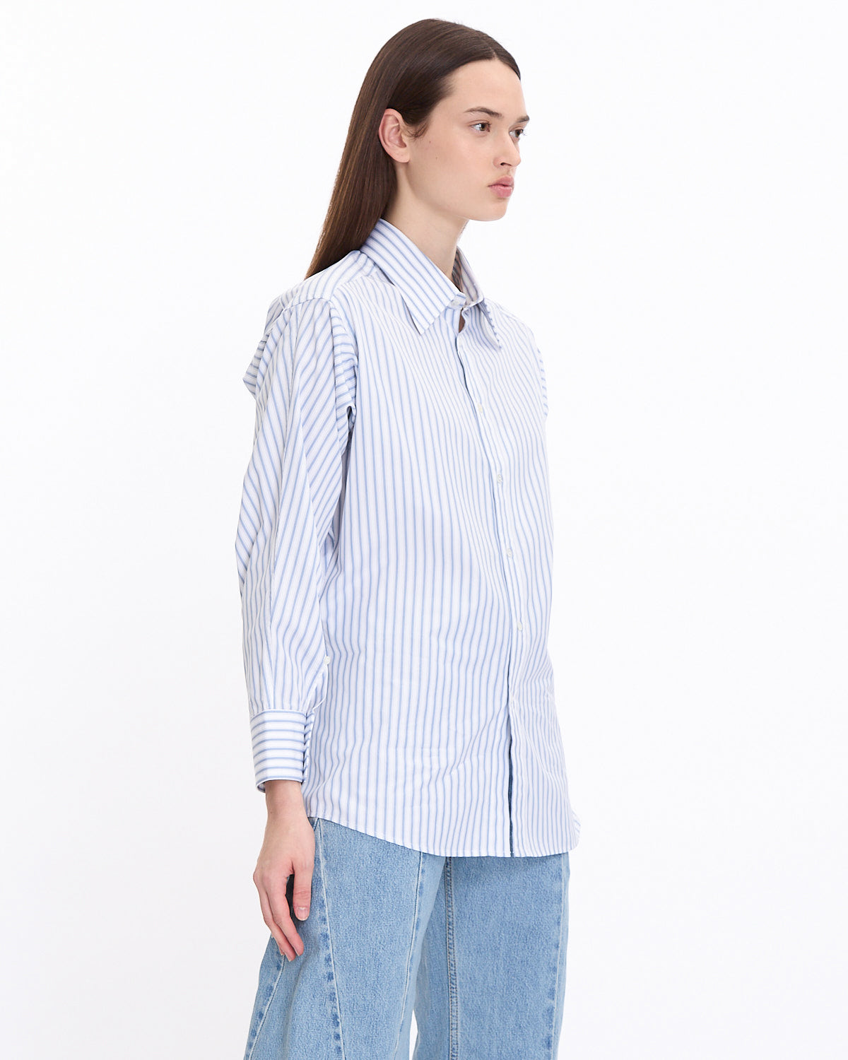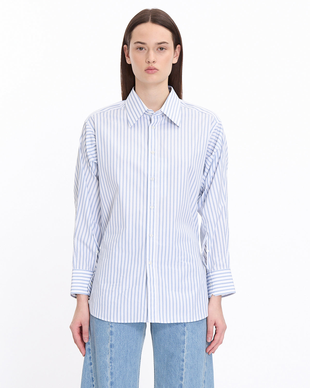 Maison Margiela Striped Cotton Shirt in striped features a classic collared design in a cotton fabrication. Details include buttoned plackets and cuffs, button closures, vertical stripes and Margielas signature stitching at back.