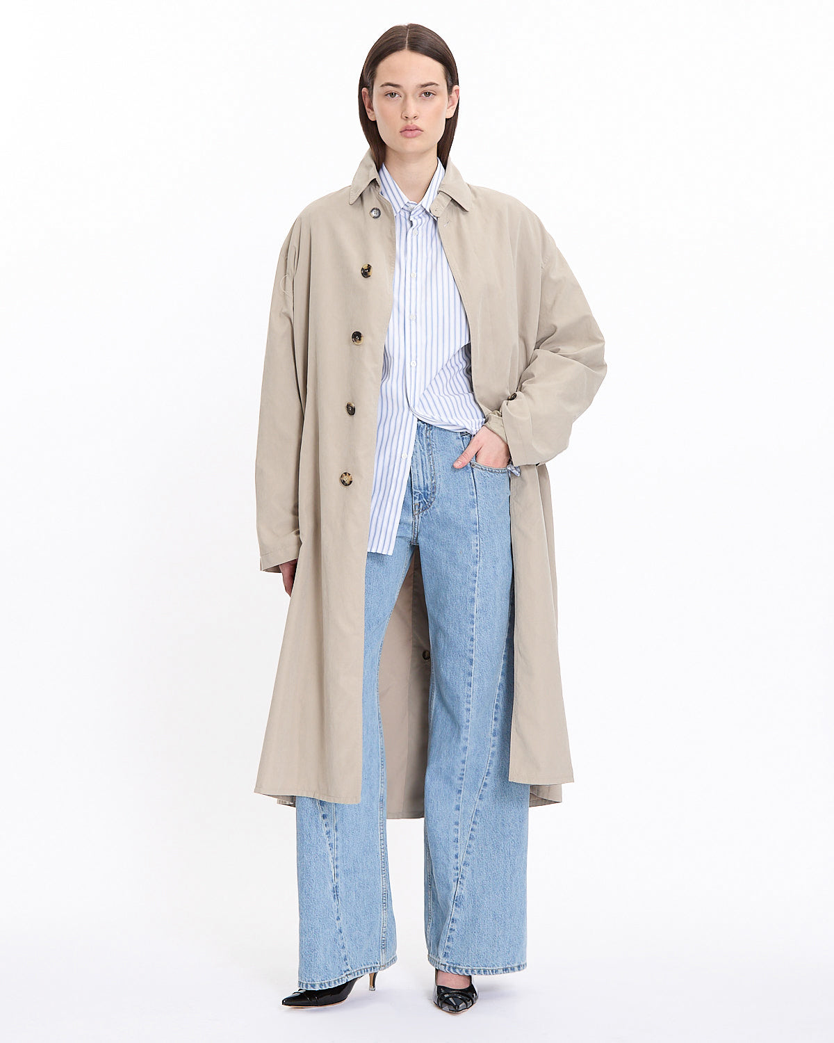 Styled with Maison Margiela 5 Pockets Denim, Maison Margiela Peached Trench Coat and Maison Margiela Kinkies Slingback