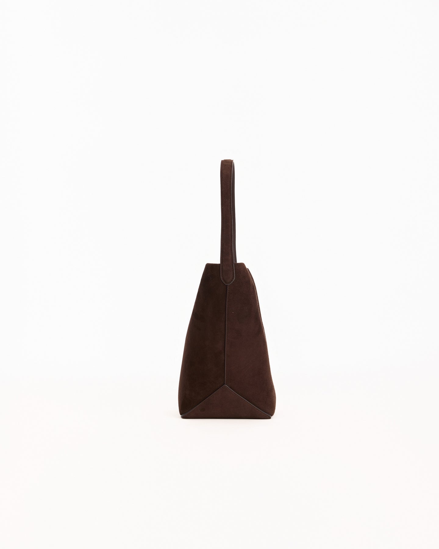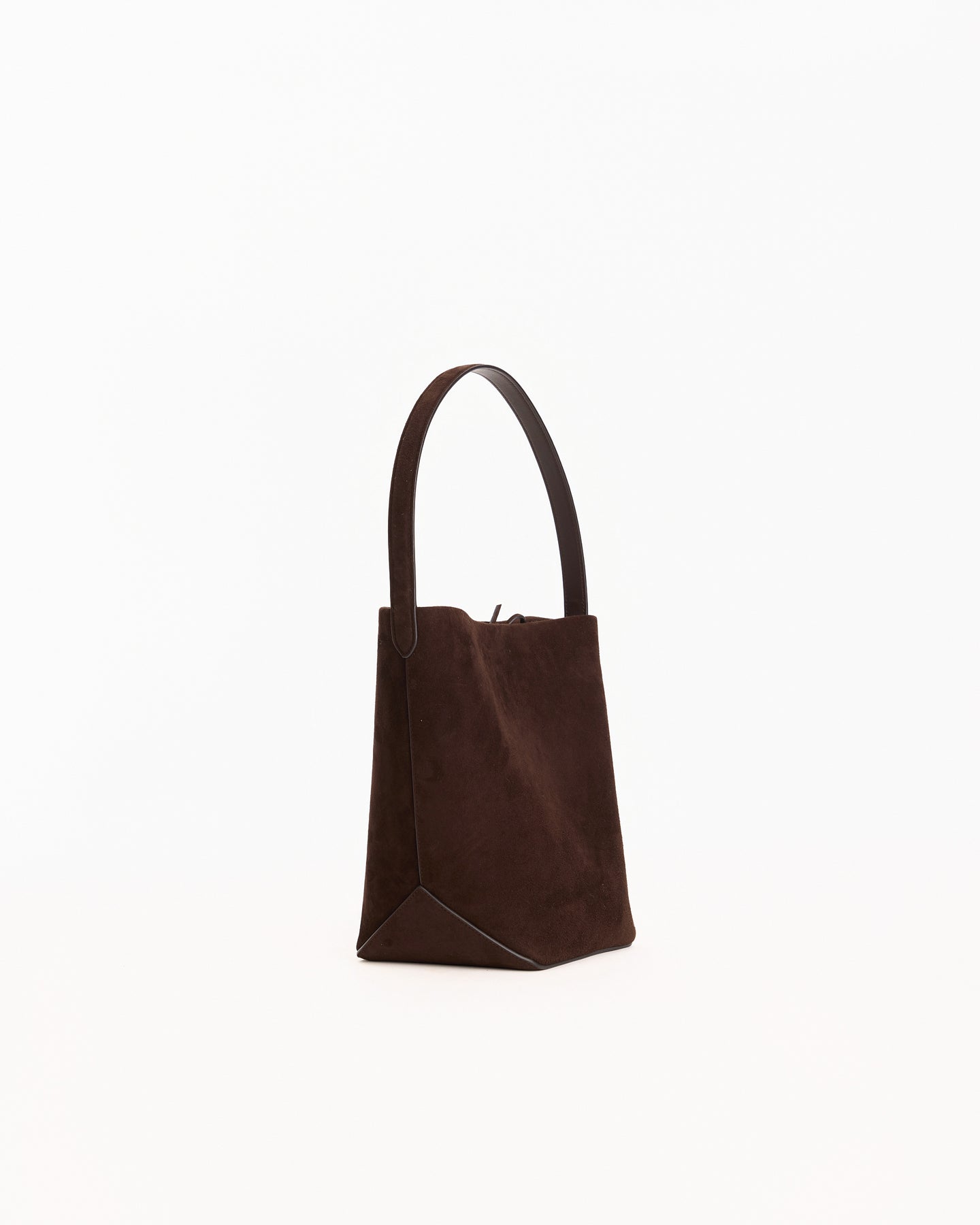 The Row Medium N/S Park Tote Edge in mocha features a classic tote design in a suede leather fabrication. Details include interior tie closure, flat handle, suede lining and embossed logo at front.