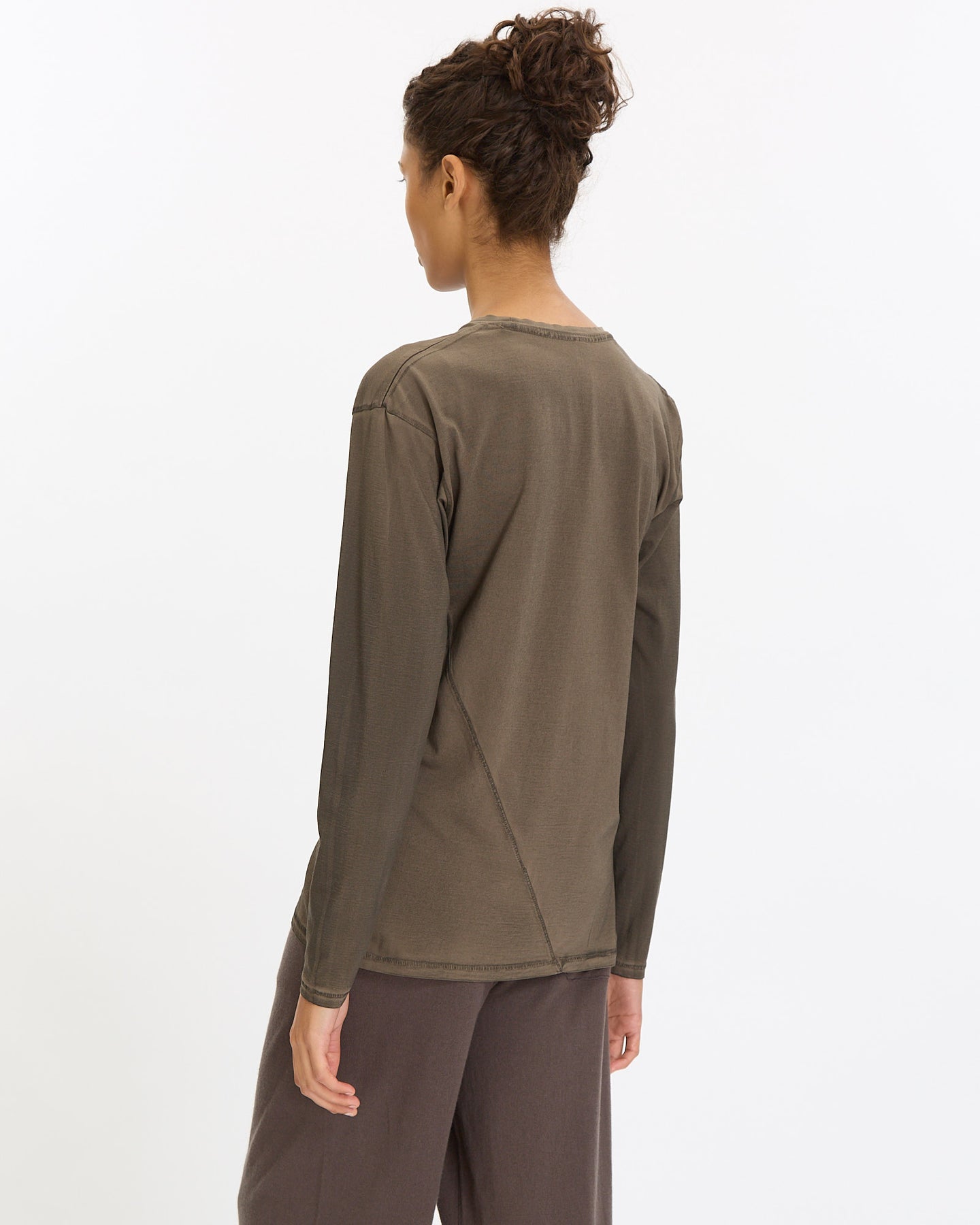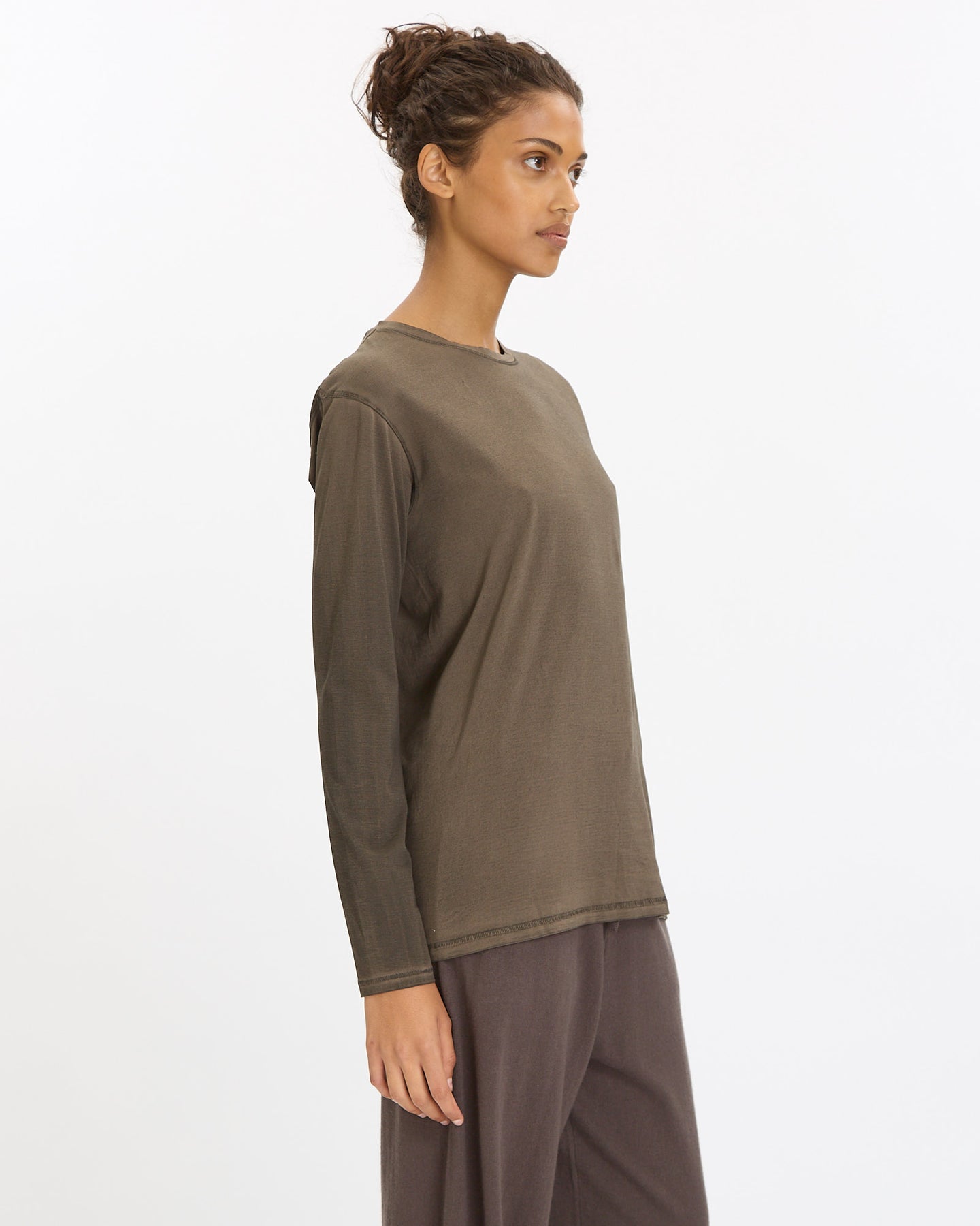 Lauren Manoogian Bias Long Sleeve Tee in painted barnwood features a classic long sleeve t-shirt silhouette in a soft pima cotton fabrication. Details include back bias seam and clean edge finishing.