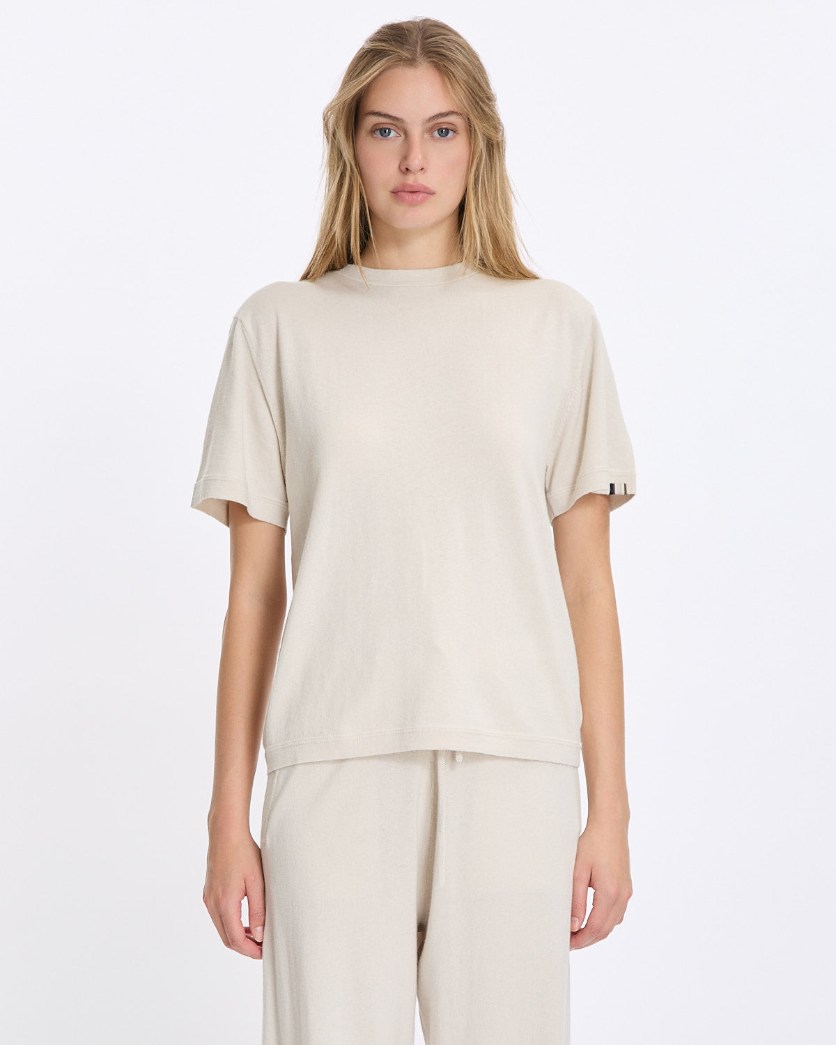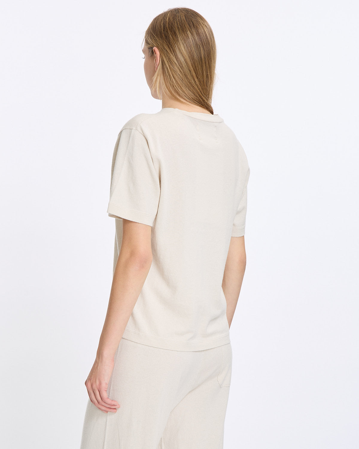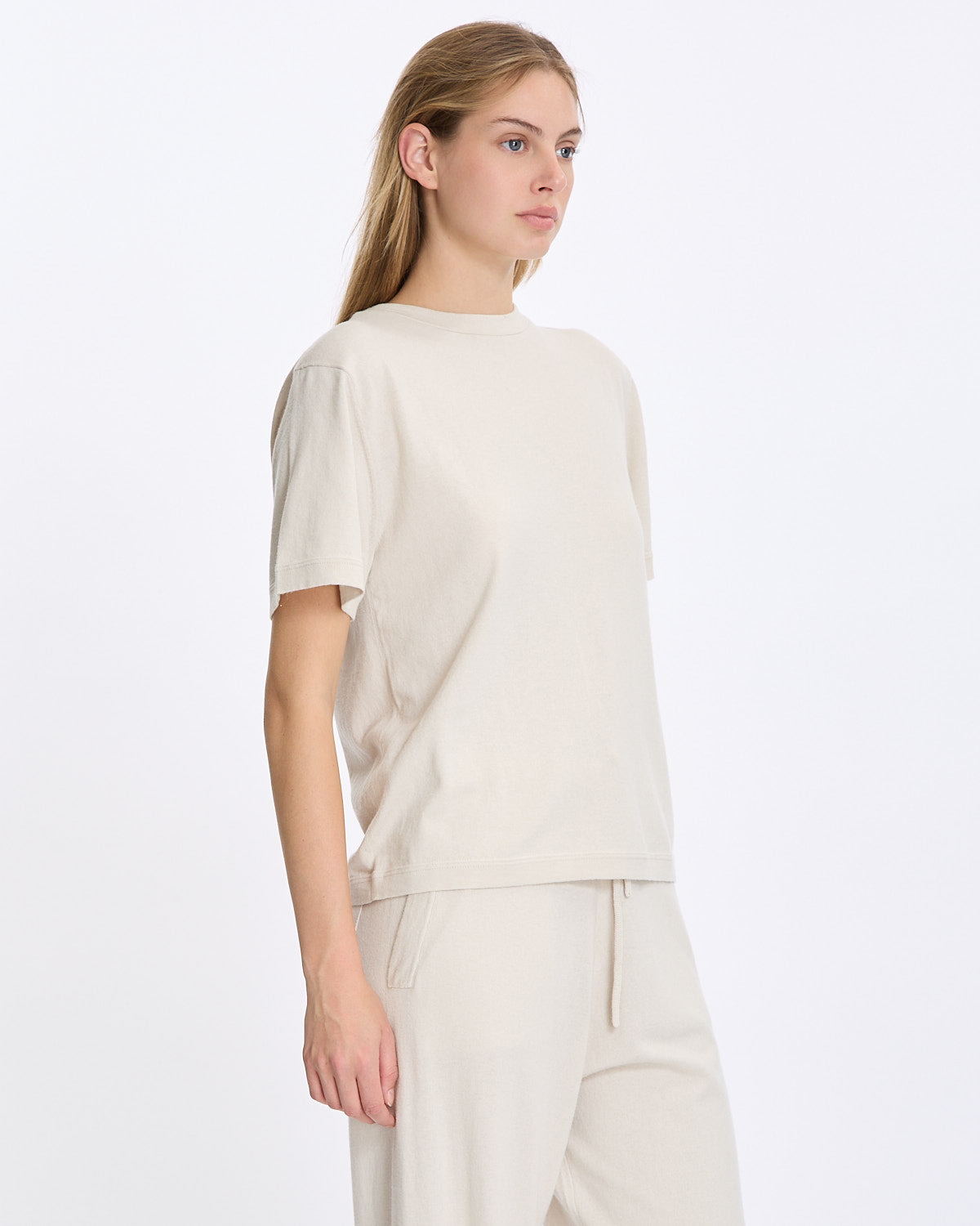 Extreme Cashmere N°268 Cuba T-Shirt in chalk features a boxy fit. Details include classic crewneck line, crisp light weight cotton-cashmere blend, and short sleeves.