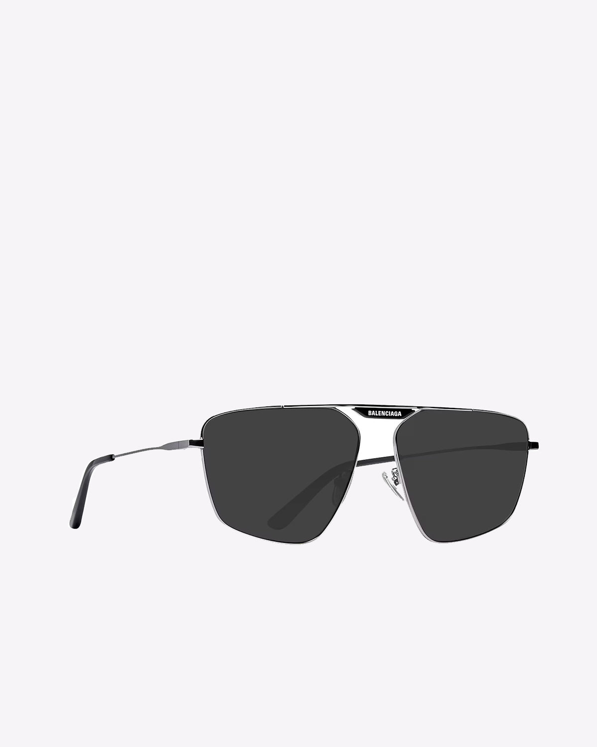Balenciaga Tag 2.0 Navigator Sunglasses in matte dark blue features a classic navigator style, smart fit and bridgeless design.